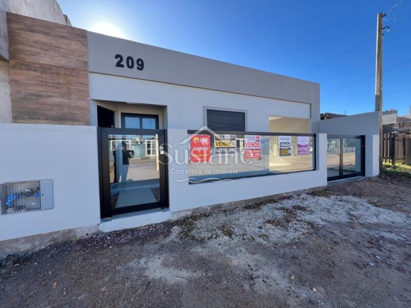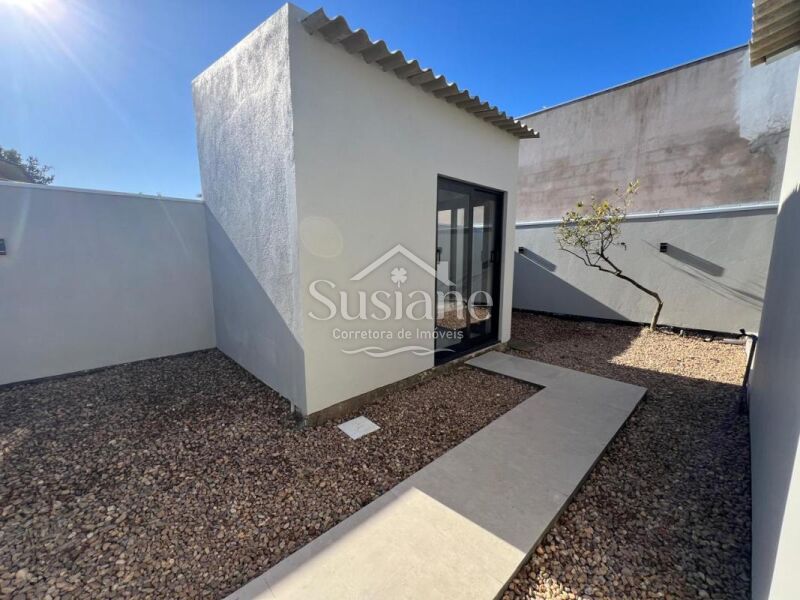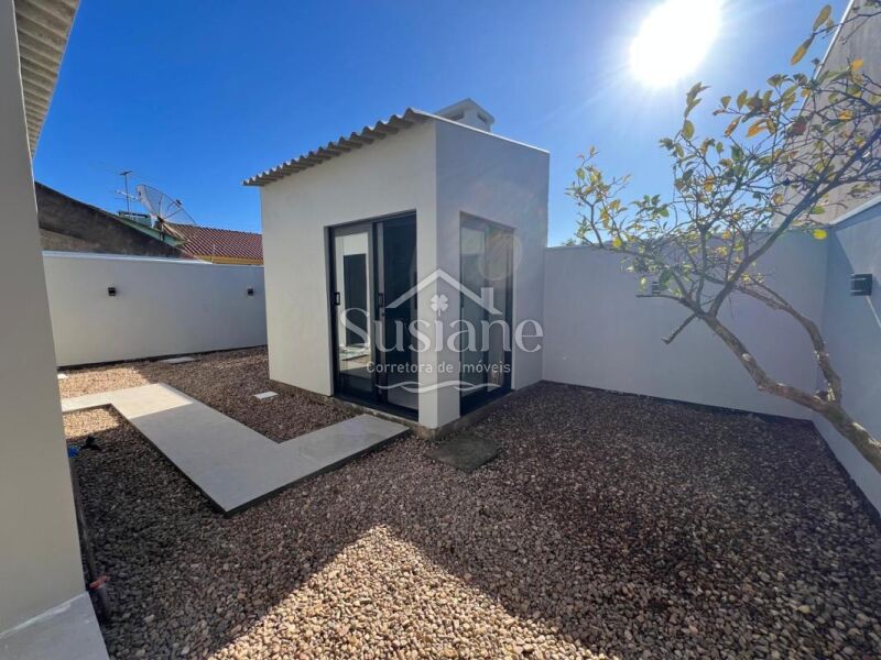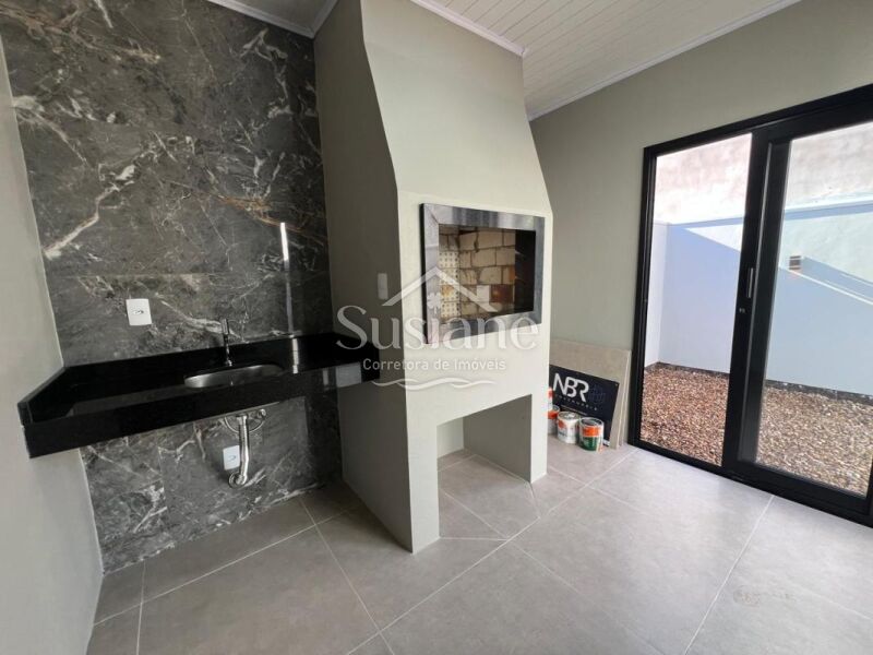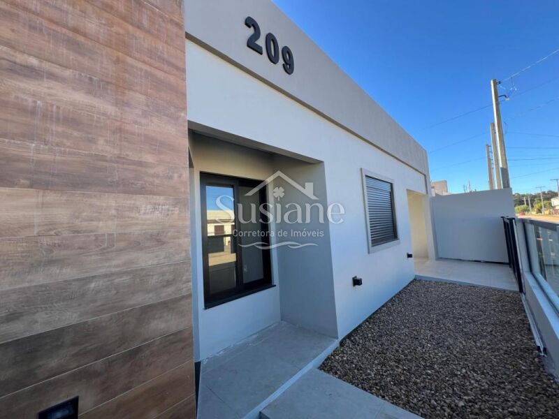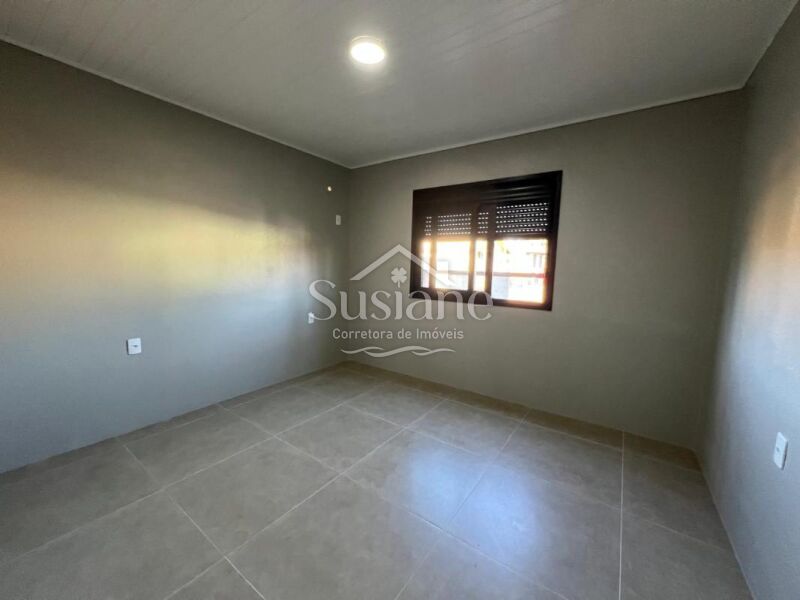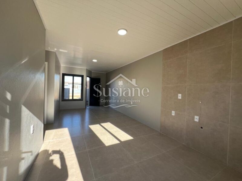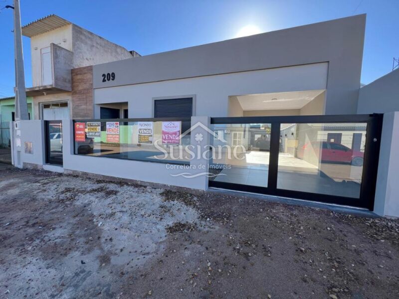 Casa em alvenaria, com dois dormitórios, banheiro, sala cozinha com lareira, garagem, lavanderia e despensa.