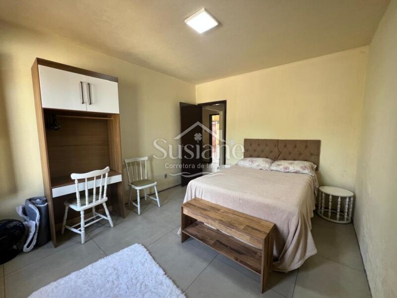 Com uma ótima posição solar, esta casa de alvenaria e laje conta com: dois dormitórios, sala de estar com lareira, banheiro social, sala de janta, cozinha. Nos fundos possui uma área coberta com churrasqueira, dormitório, lavanderia e garagem. Terreno: 10,00m x 22,00.