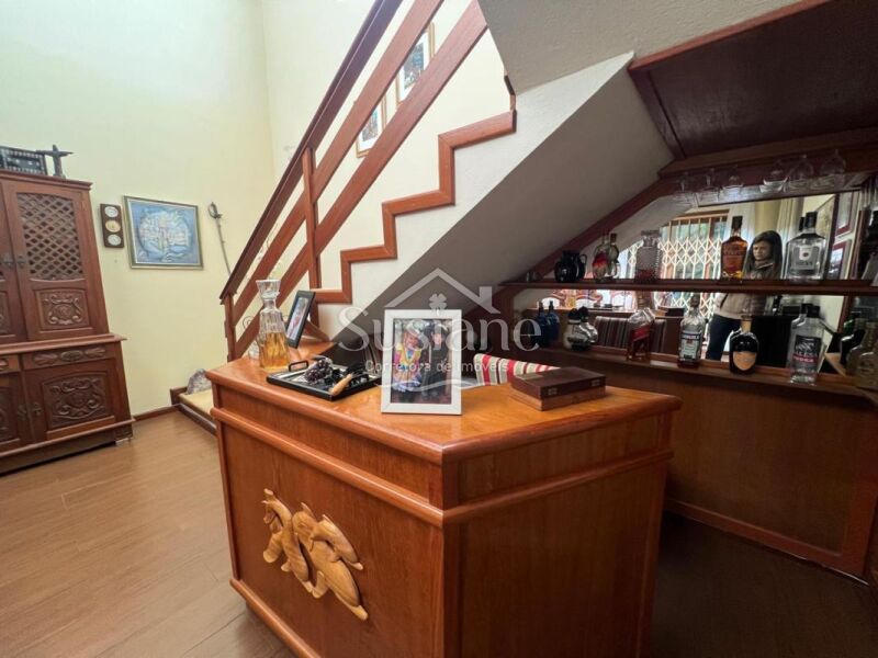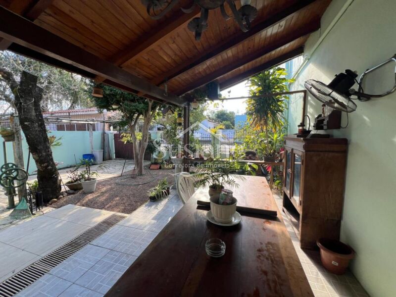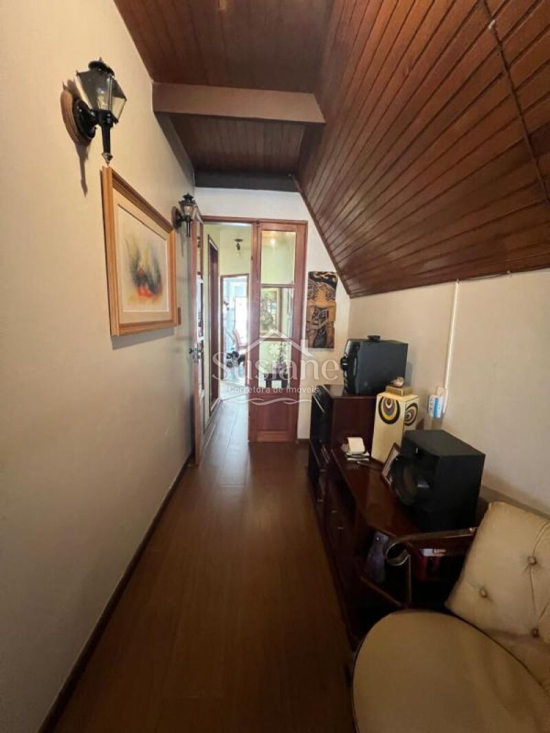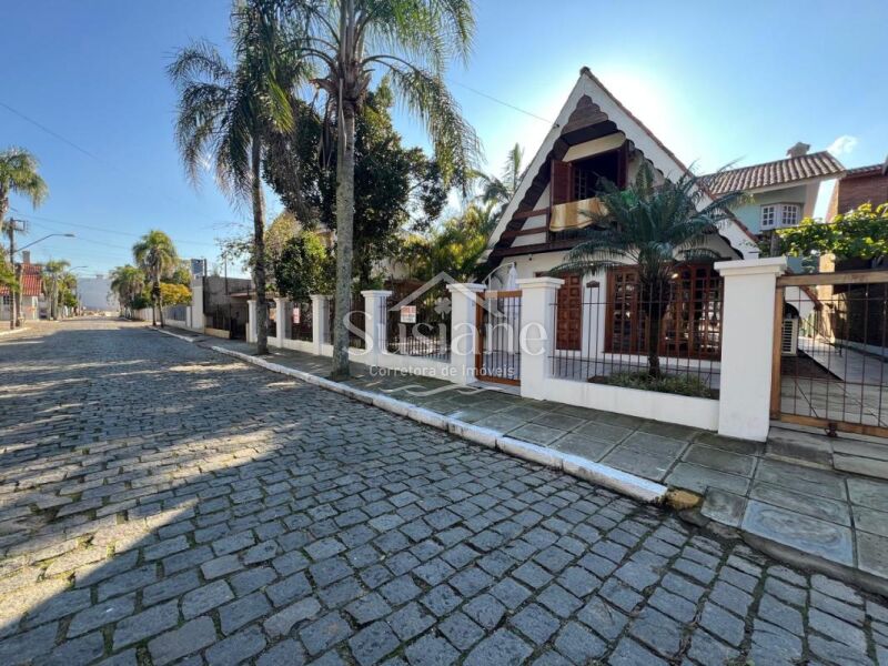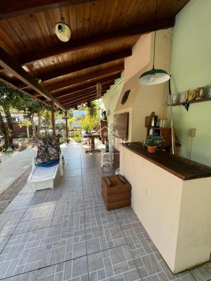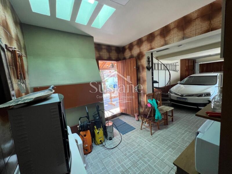 O imóvel conta dom cinco dormitórios, (sendo duas suítes com closet, e uma delas com banheira de hidromassagem), sala de estar com lareira, sala de jantar, cozinha ampla com despensa, três banheiros, área gourmet, piscina, garagem com churrasqueira, abrigo para carro e lavanderia.