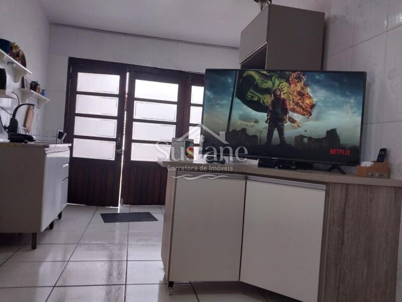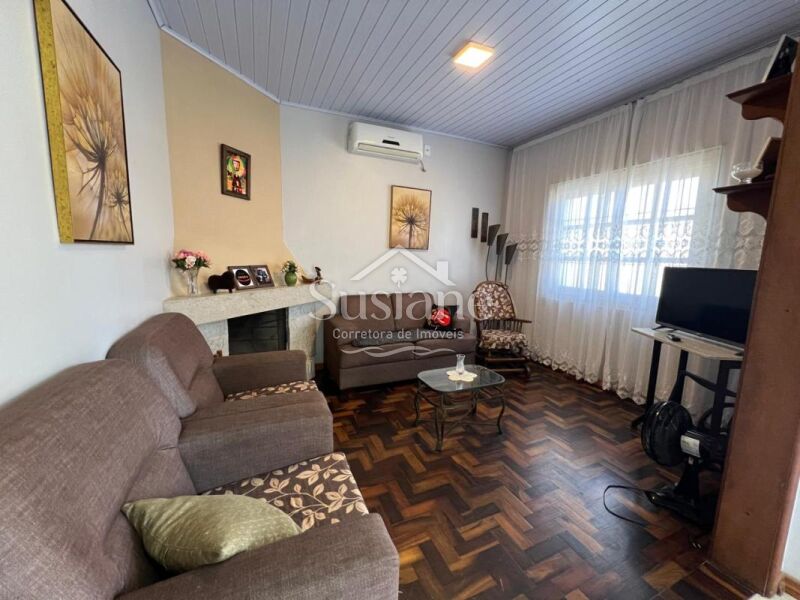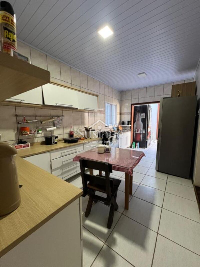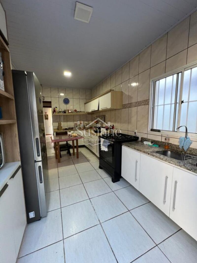 Casa de alvenaria, laje e telha, com dois dormitórios, sala de estar ampla com  lareira, cozinha e banheiro social. Nos fundos conta com uma sala e cozinha ampla com fogão a lenha, dormitório, banheiro social e área de serviço. Pátio lateral e conta com uma garagem fechada com portão eletrônico