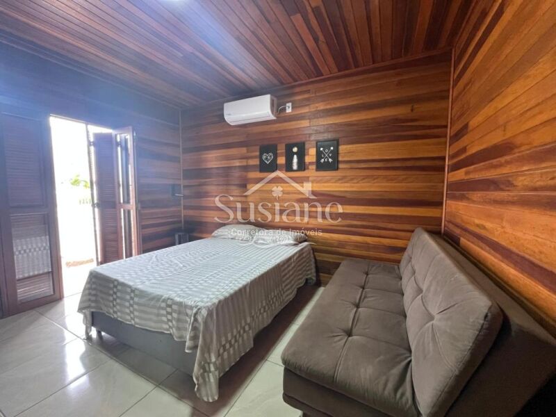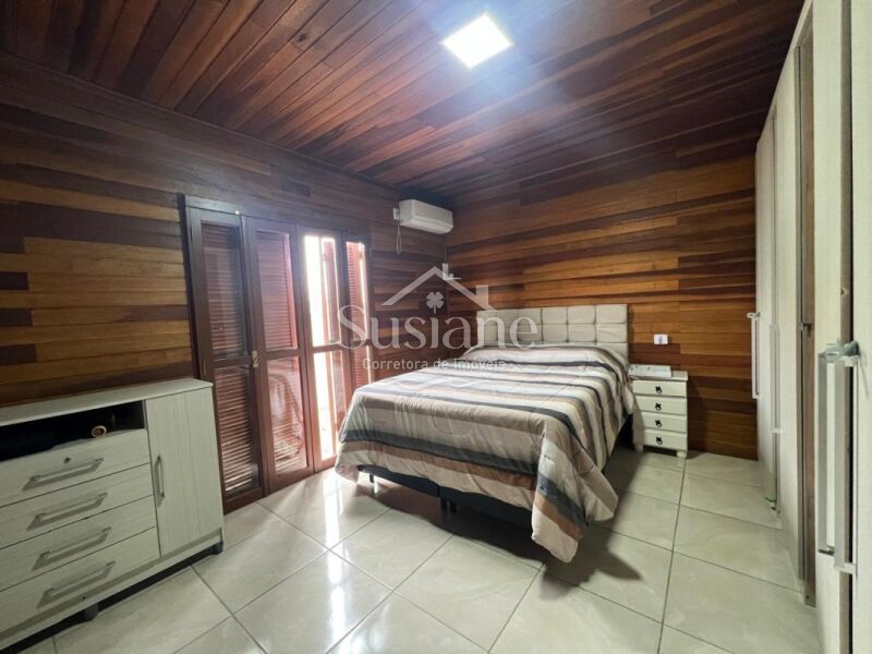 Chalé misto (madeiramento em angelim e cedro), com dois dormitórios amplos, banheiro social com box de vidro, sala de estar com lareira em um conceito aberto e amplo com a cozinha toda sob medida, lavanderia, área nos fundos com porto de vidro, área gourmet, lavabo e piscina.