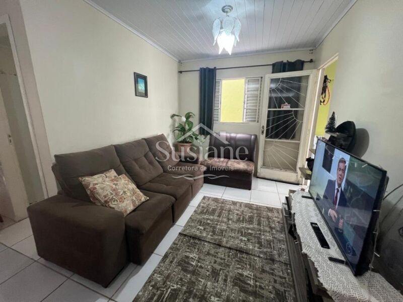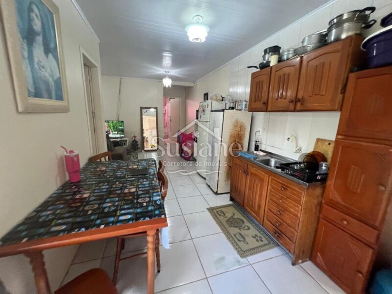 Casa de alvenaria uma parte com laje e outro com forro pvc, com dois dormitórios, sala de estar, cozinha ampla com churrasqueira e área de serviço, banheiro social e garagem fechada.