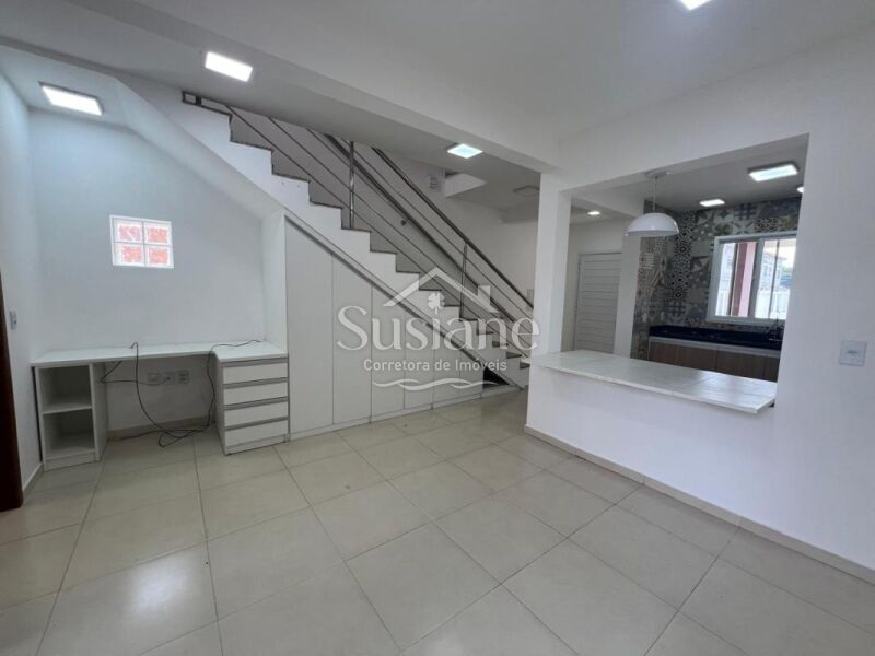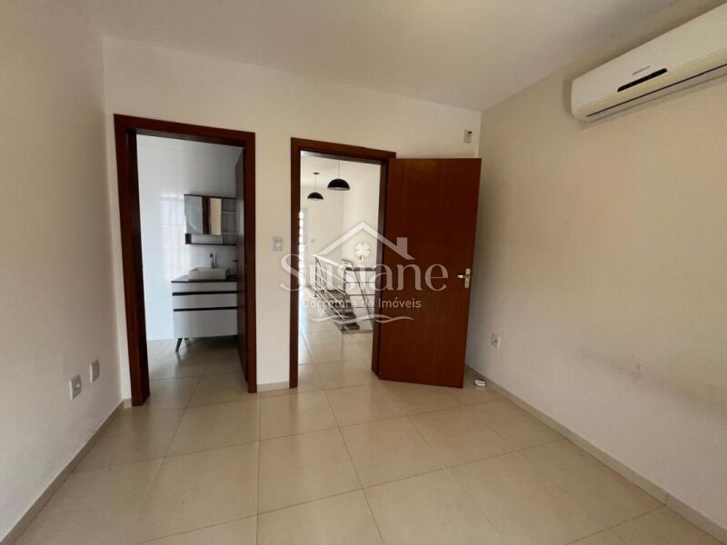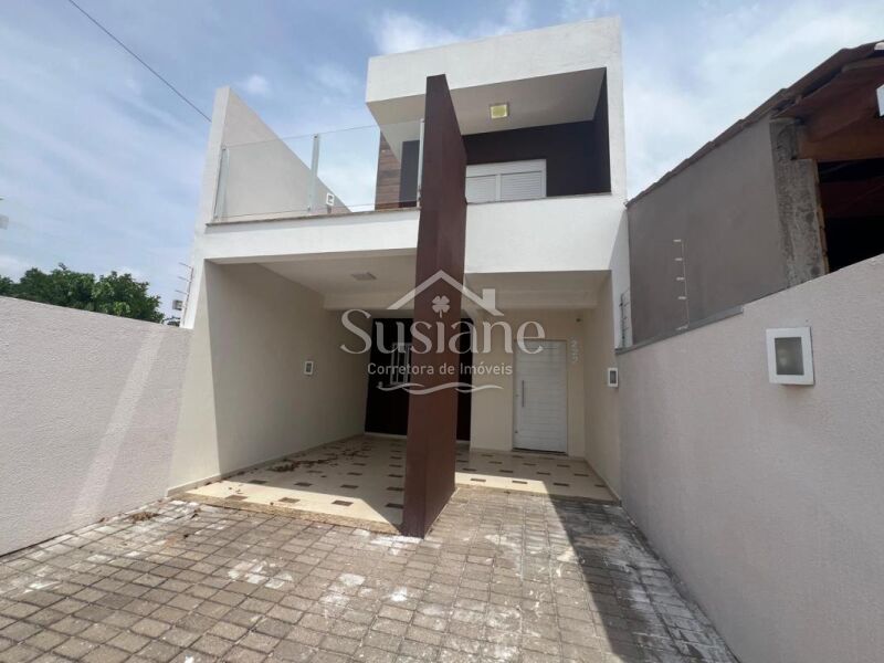 Sobrado em alvenaria e laje, com duas suítes com sacadas, um dormitório (térreo), ar-condicionado em todos dormitórios, sala de estar, cozinha planejada, banheiro social, armários sob medida em baixo da escada, abrigo para carro.