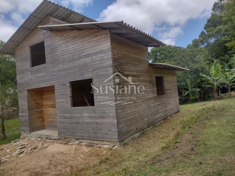 Contendo um chalé inacabado, com 3 quartos, sala e cozinha, banheiro social e uma mezanino amplo.