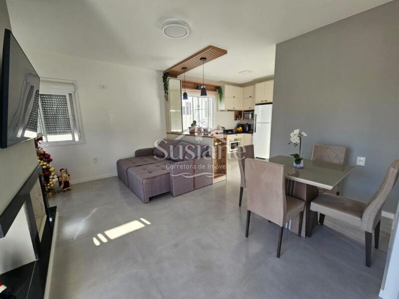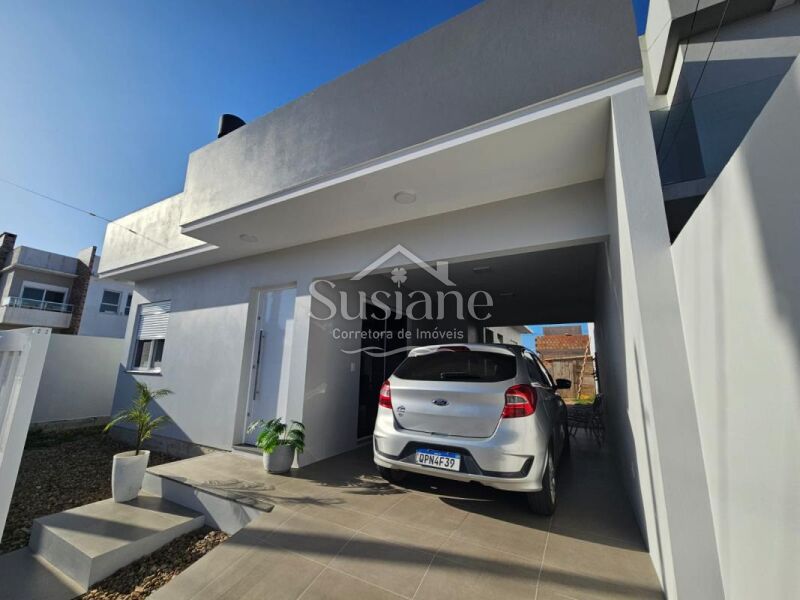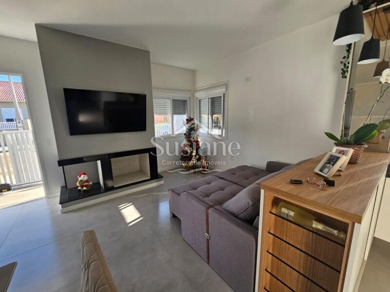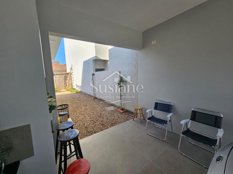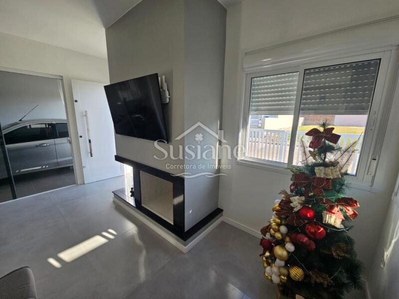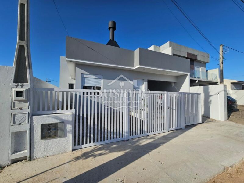 A casa oferece dois dormitórios, sendo uma suíte, amplos e ensolarados, sala estar com lareira, cozinha com móveis sob medida, lavanderia, garagem com churrasqueira.