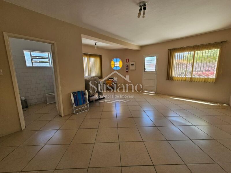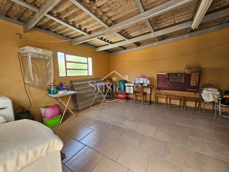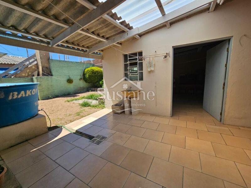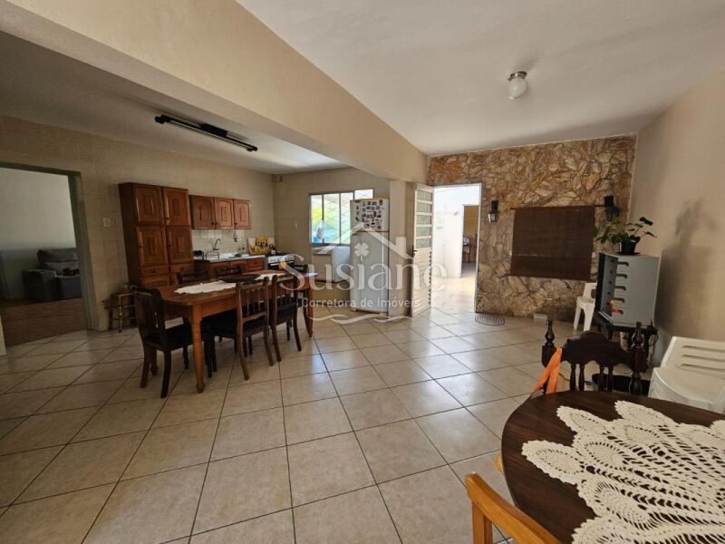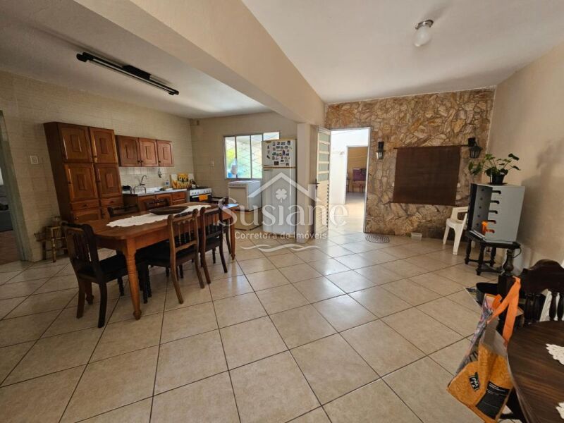 Casa possui 03 dormitórios, 02 banheiros, sala estar, jantar, cozinha, salão de festas com garagem, lavandeira e pátio .