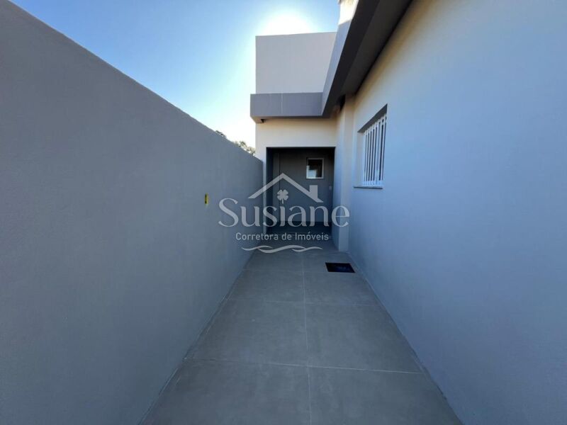 Imóvel novo, planejado nos mínimos detalhes para seu lar ficar aconchegante, com dois dormitórios, sala ampla com lareira, cozinha funcional com churrasqueira, banheiro social e lavanderia. Estrutura para segundo piso, com projeto e plantas para duas suítes a mais neste lindo imóvel. Terreno: 6,95m x 30,00m.