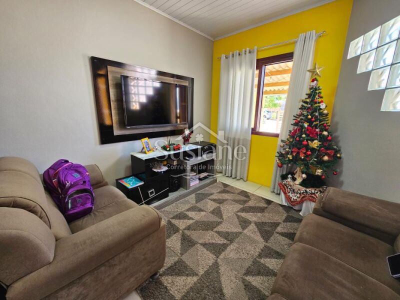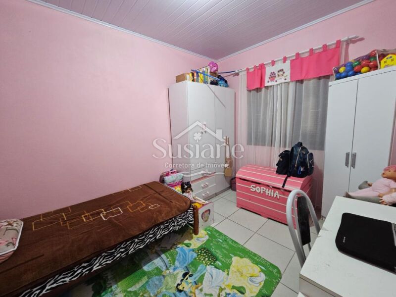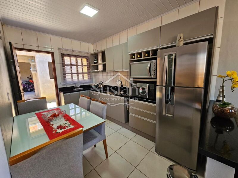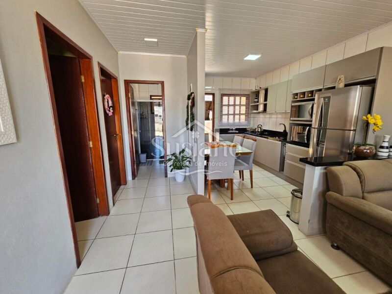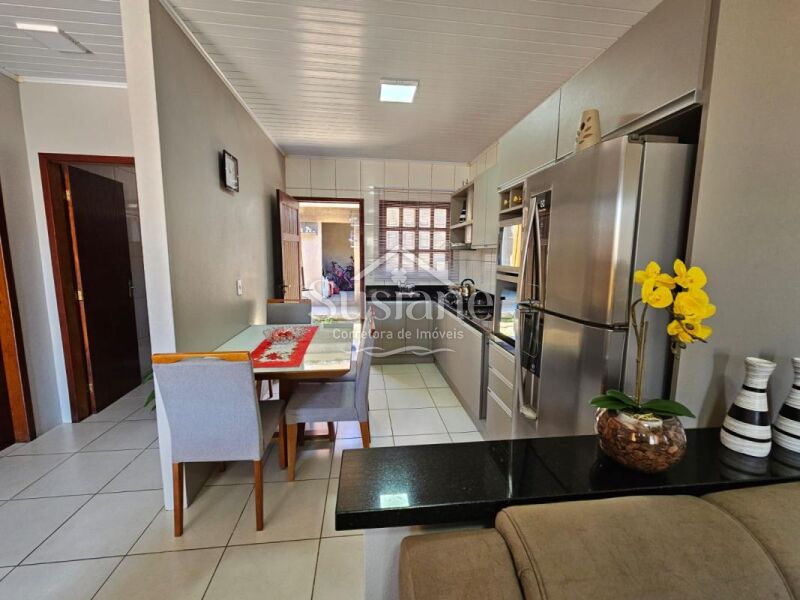 A casa oferece dois dormitórios, sala estar, cozinha, banheiro e garagem. Nos fundos possui uma obra inacabada .