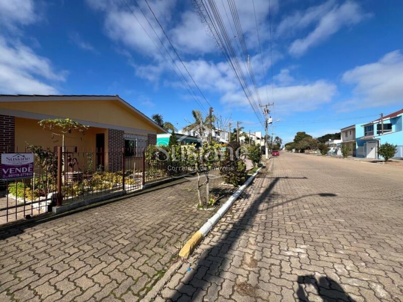 Casa de alvenaria, laje e telha, com três dormitórios amplos, sala de estar, cozinha e banheiro, área de serviço.