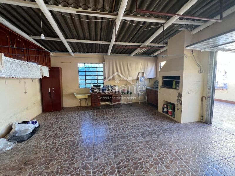 Nos fundos conta com uma garagem fechada com churrasqueira, horta com árvores frutíferas e parreira.