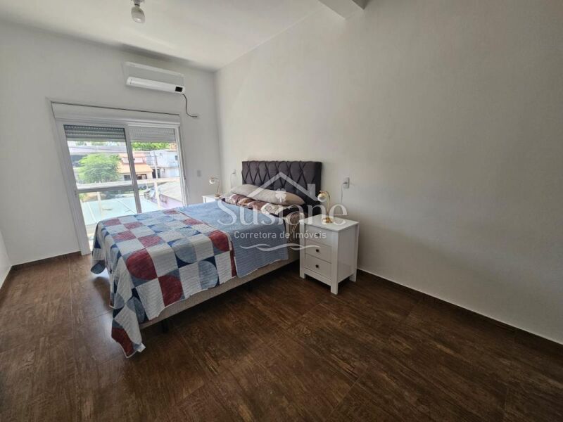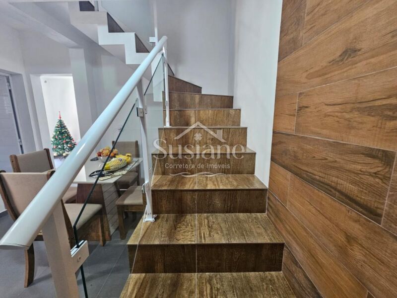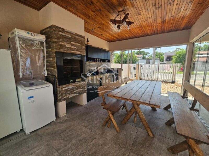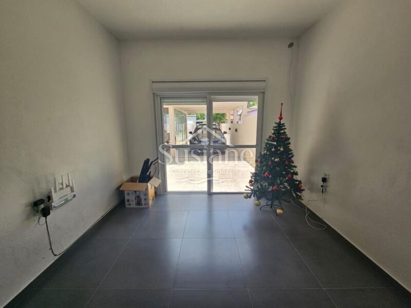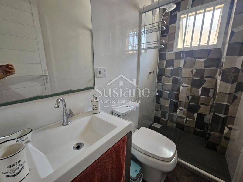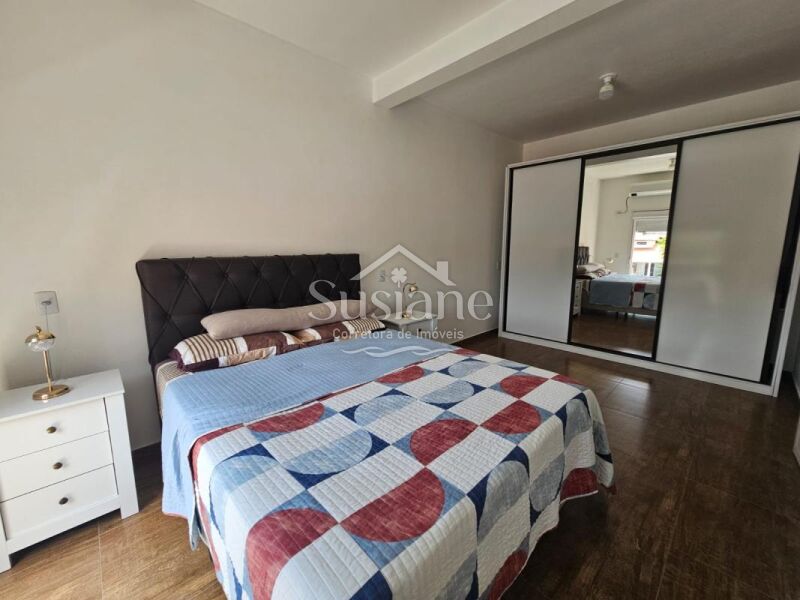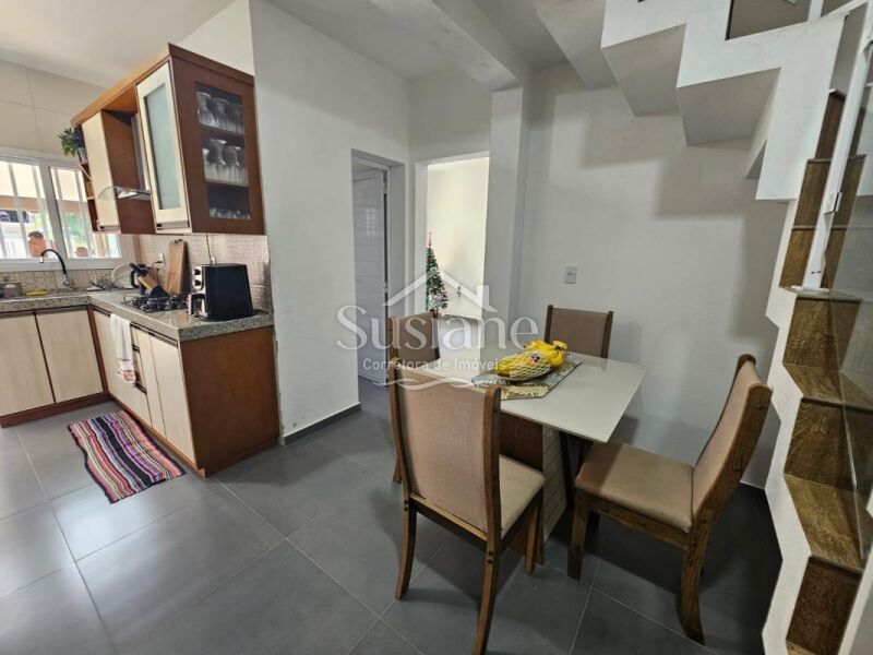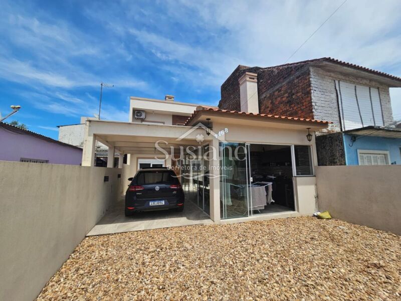 Ele oferece: dois dormitórios, dois banheiros, sala estar, jantar, cozinha, quiosque com churrasqueira e garagem para carro.