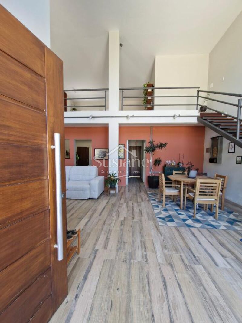 Lindo Sobrado de alto padrão possuindo dois quartos, um deles suíte com possibilidade de mais uma peça, sala ampla com pé direito duplo, cozinha espaçosa com móveis planejados. Piso térreo porcelanato e na suíte piso laminado. Jardim na frente da casa e nos fundos piscina e espaço gourmet além de um pomar com dezenas de árvores frutíferas.