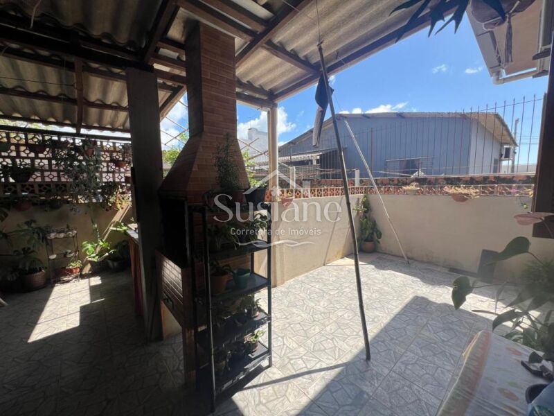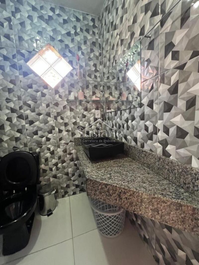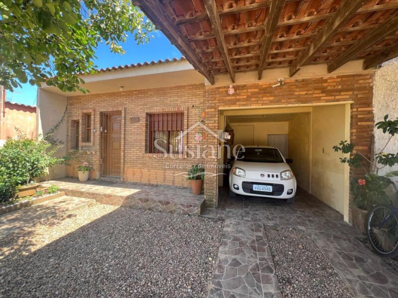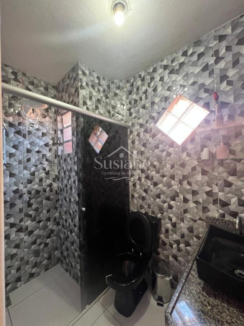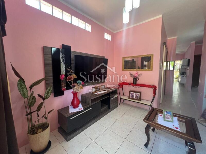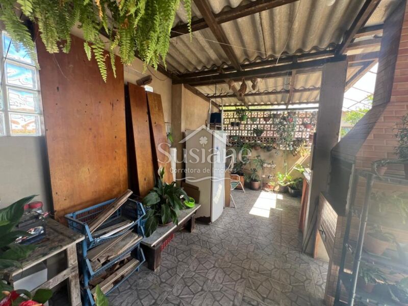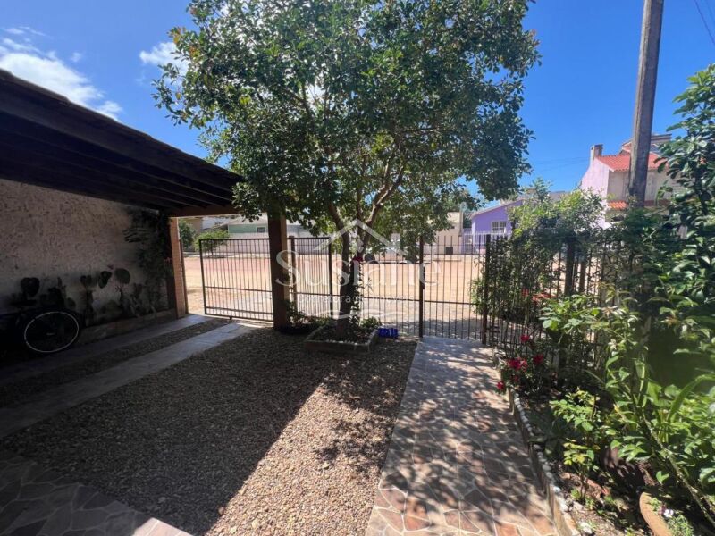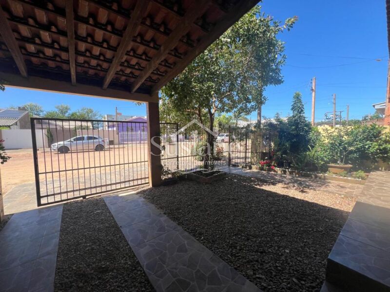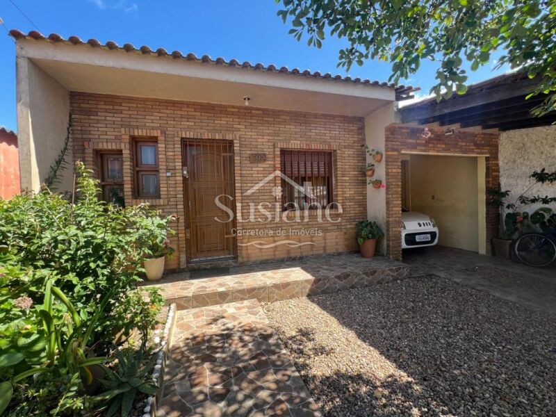 Casa de alvenaria, laje e telha de barro, feita com tijolo maciço, possui dois dormitórios (podendo ser três e um com ar-condicionado), sala de estar, cozinha ampla, banheiro social, área de serviço coberta com churrasqueira nos fundos e abrigo lateral.