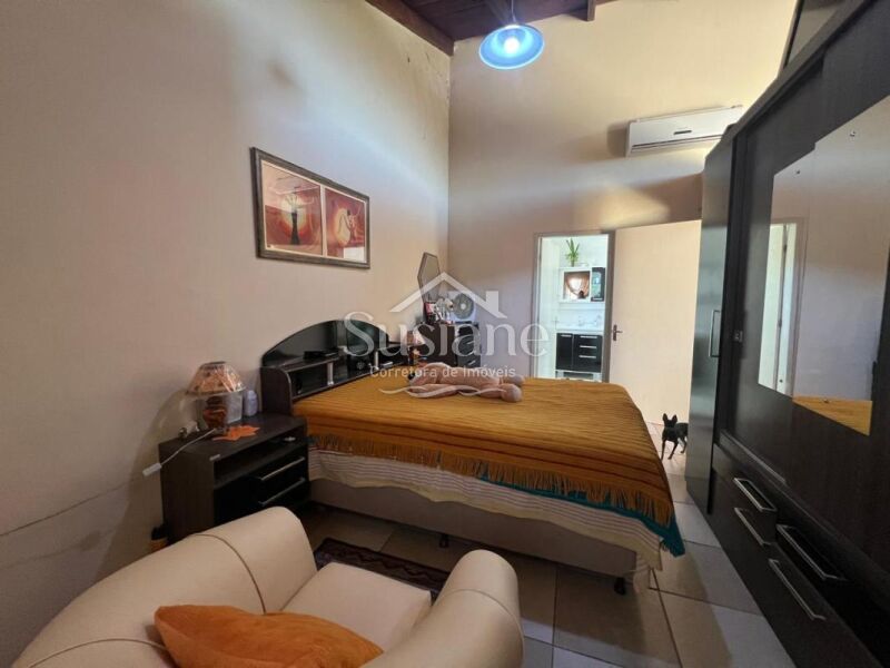 O imóvel possui na parte térrea, dois dormitórios, sala de estar com lareira, cozinha e garagem. Nos fundos conta com uma cozinha campeira, com fogão e forno a lenha, lareira e pátio.