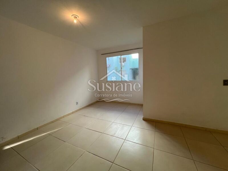 Apartamento com dois dormitórios, sala e cozinha conjugada, área de serviço e banheiro social com box.