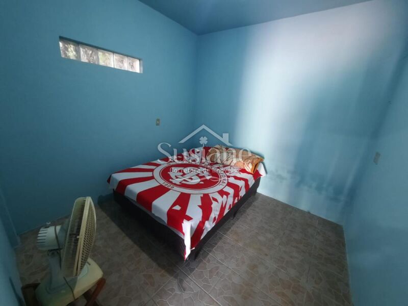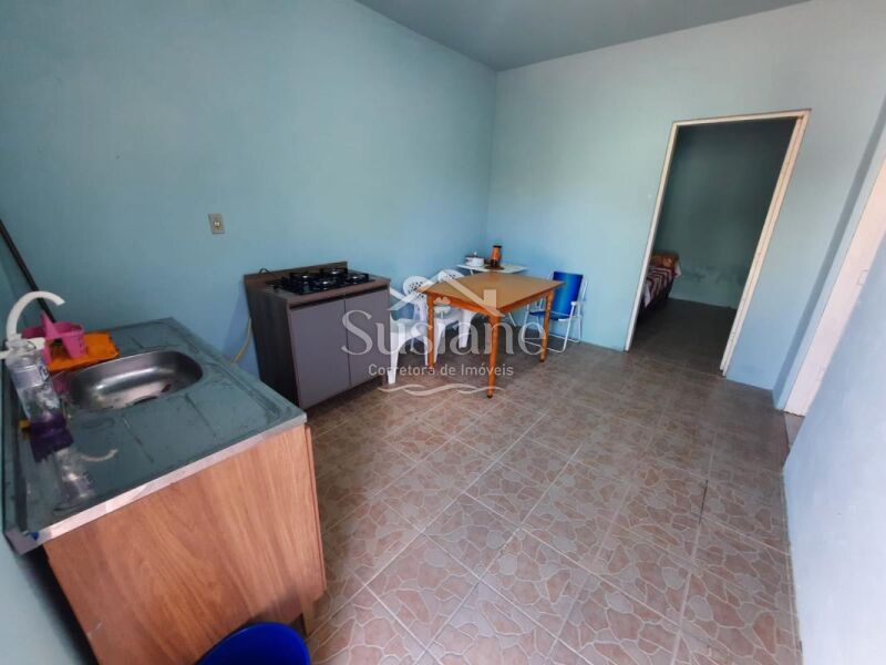 O imóvel conta com sala de estar integrada à cozinha, banheiro social, dormitório e garagem com churrasqueira — perfeita para reunir família e amigos