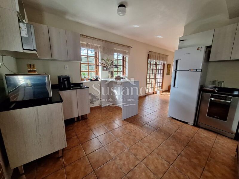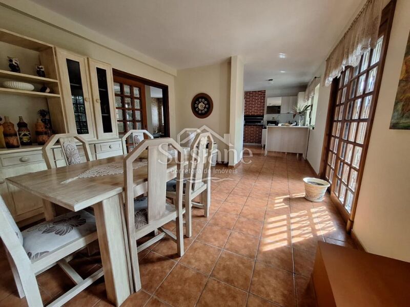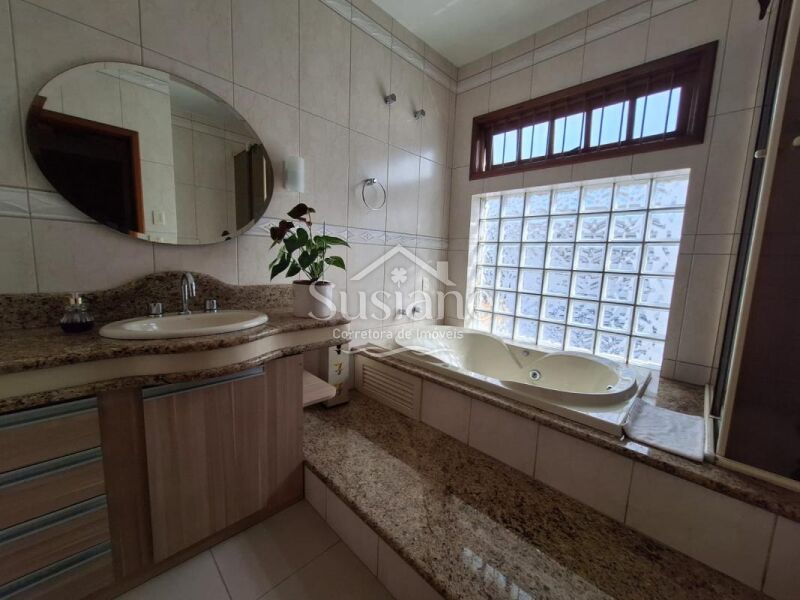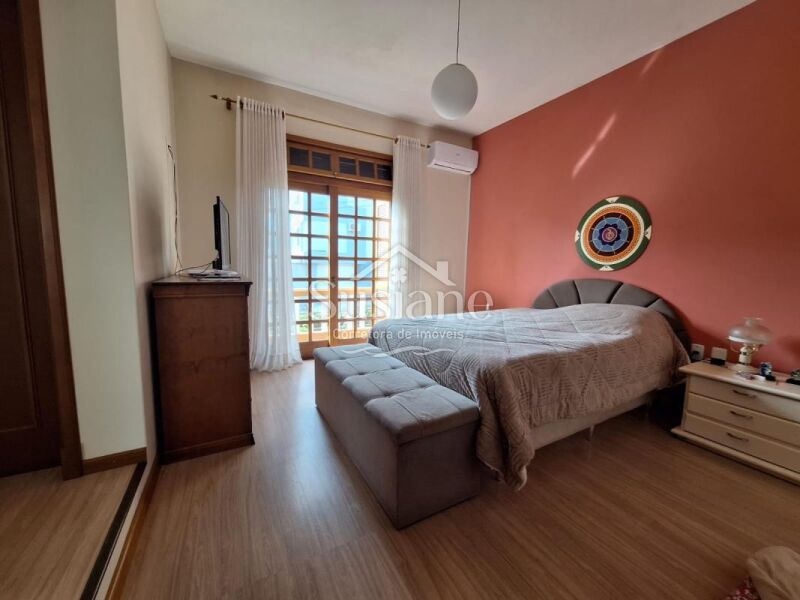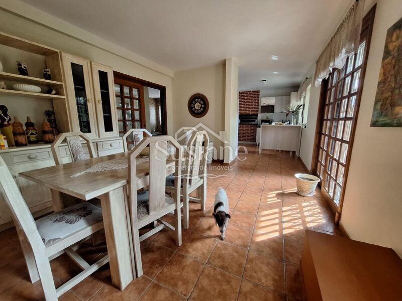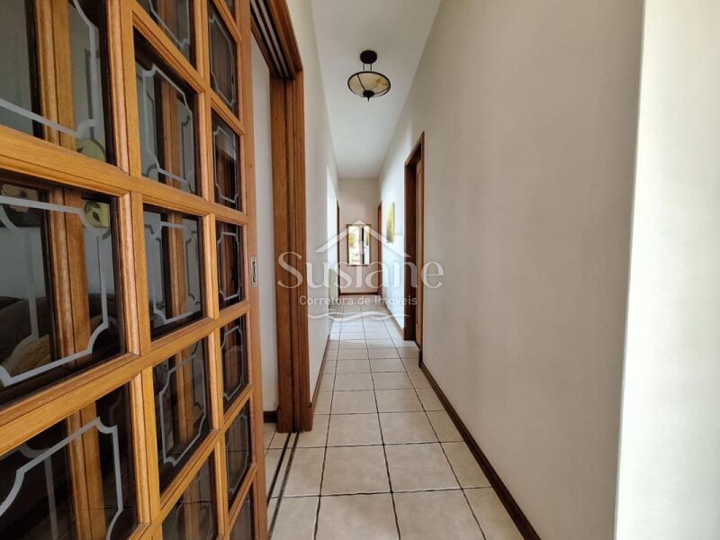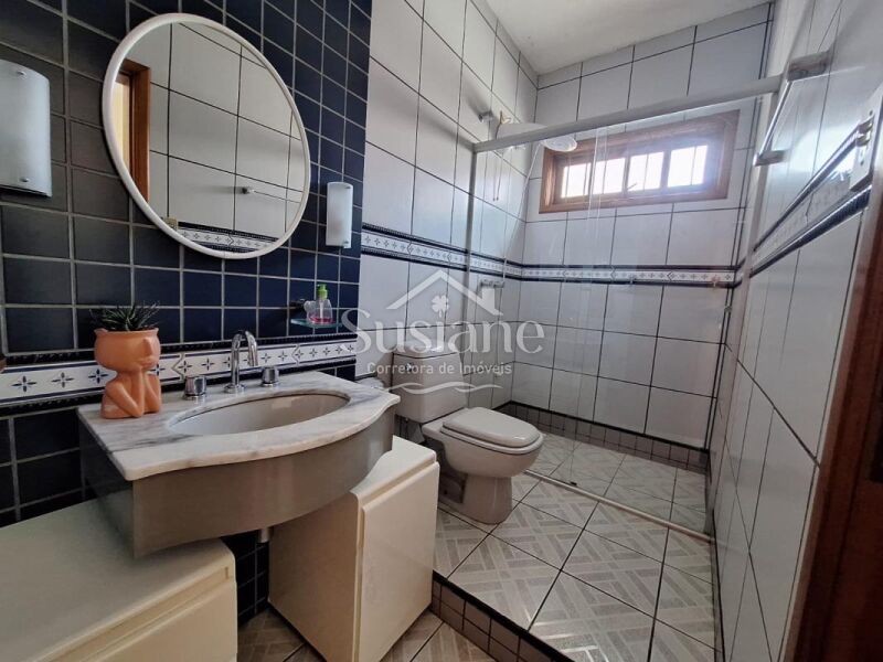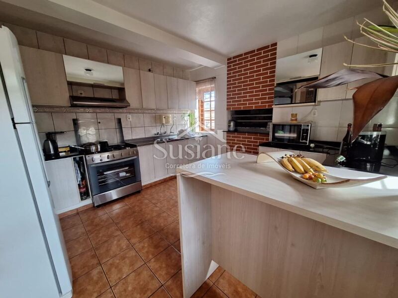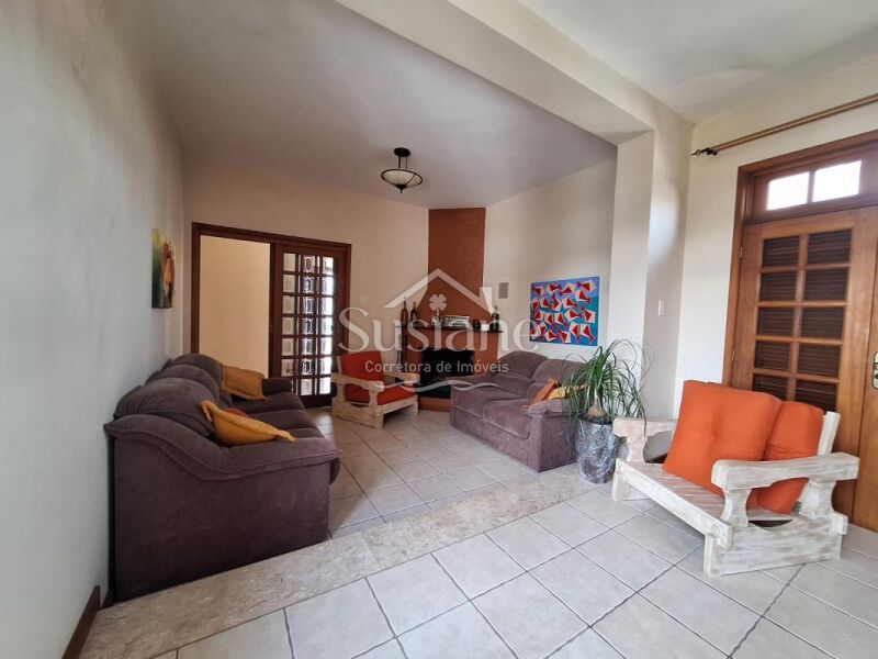 Com quatro dormitórios, sendo uma suíte com hidro, três banheiros, três salas, sala de janta, cozinha com churrasqueira, despensa, lavanderia, garagem para dois carros.