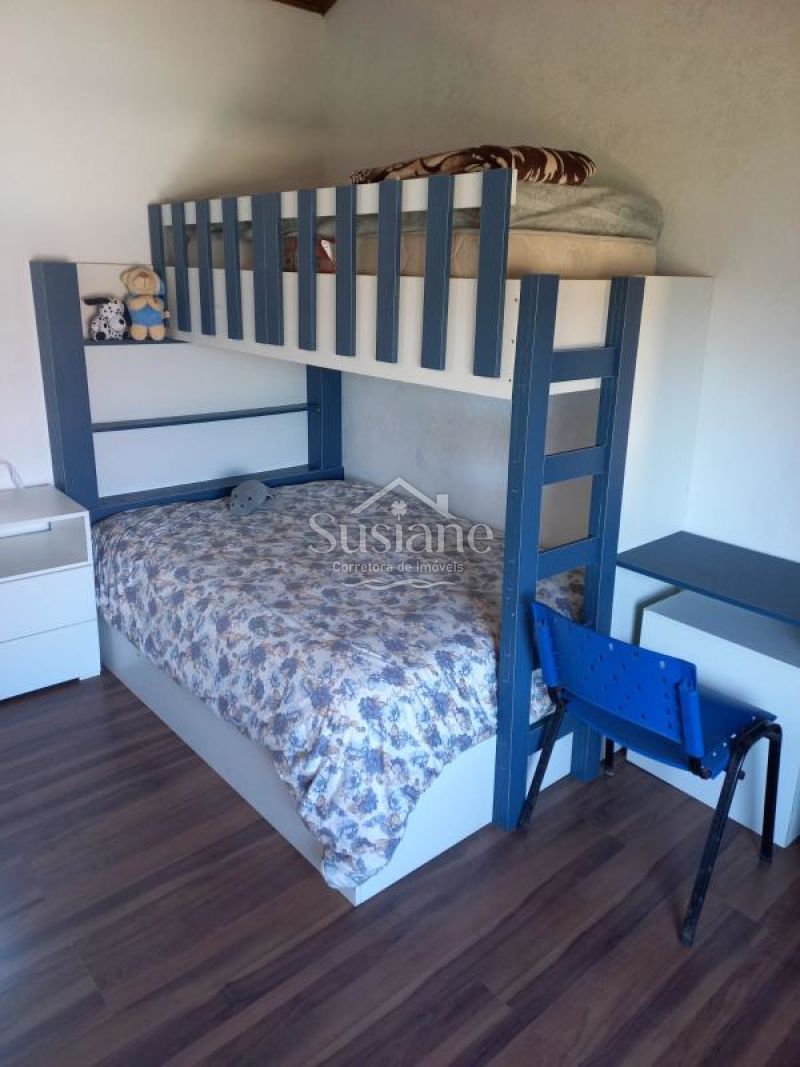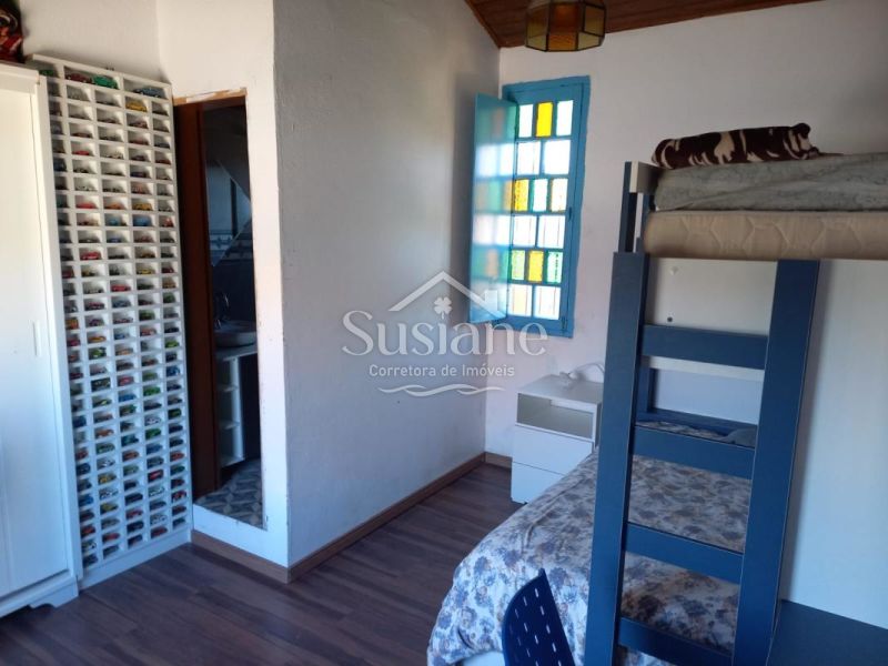 1 quarto (um com closet) e banheiro com 2 chuveiros, 1 quarto segundo piso com banheiro e quarto sob medida,1 sala de estar, Cozinha, Varanda grande com Churrasqueira, Garagem