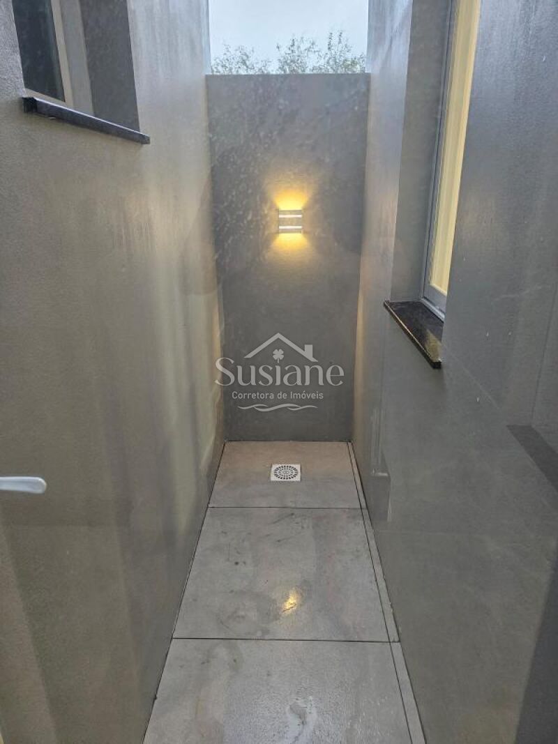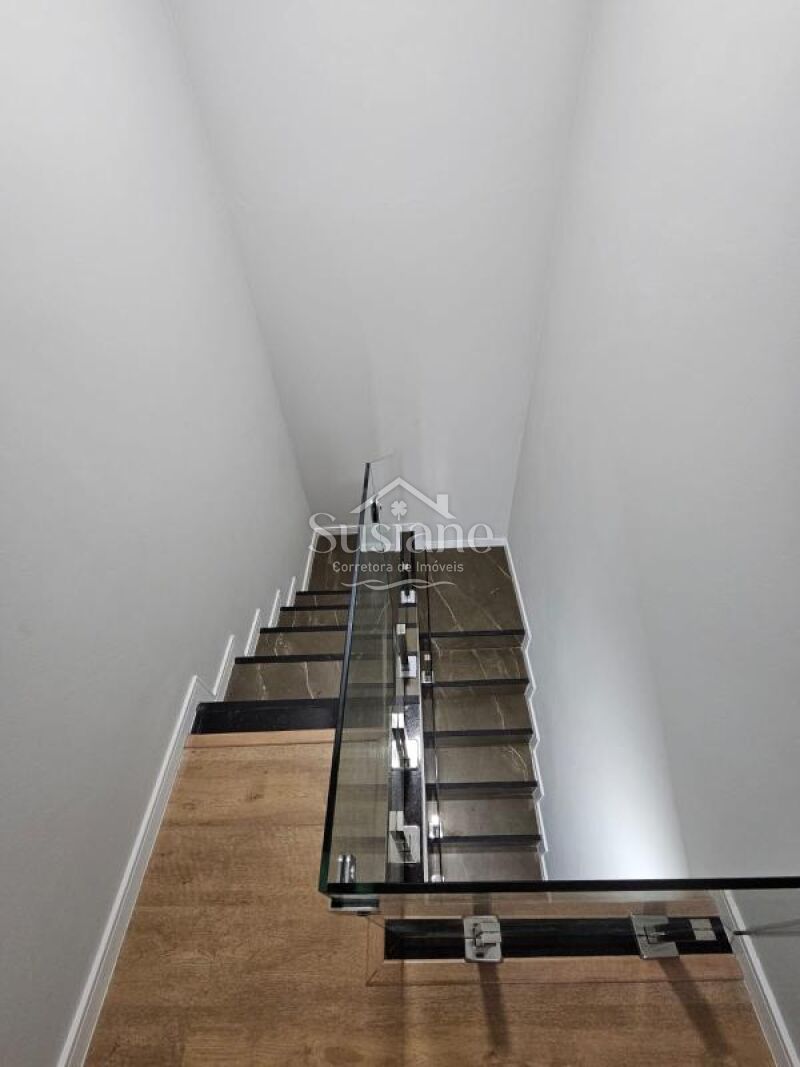Térreo: Um dormitório, sala estar com lareira, cozinha, área de luz, garagem ampla, área coberta com churrasqueira e lavanderia.