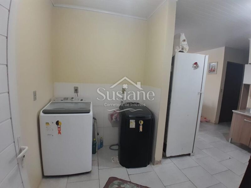 Casa em alvenaria e forro no Bairro Avenida, o imóvel conta com três dormitórios, sala e cozinha conjugadas, dois banheiros, lavanderia, garagem com churrasqueira e pátio fechado.