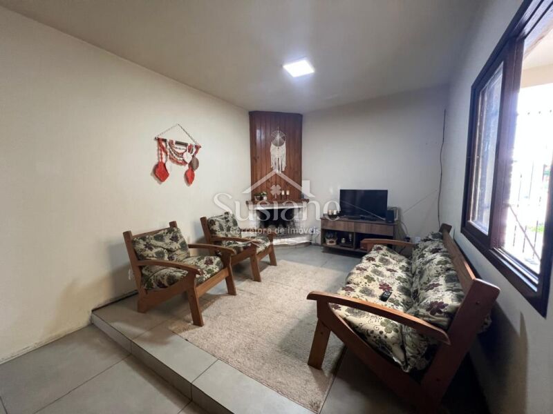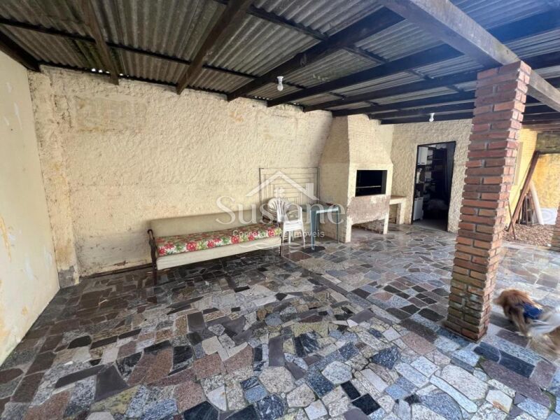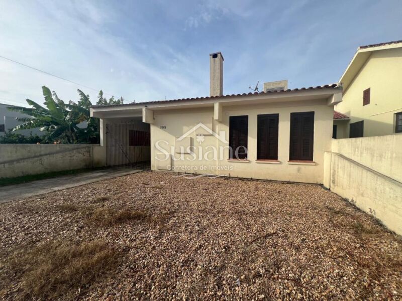 Com uma ótima posição solar, esta casa de alvenaria e laje conta com: dois dormitórios, sala de estar com lareira, banheiro social, sala de janta, cozinha. Nos fundos possui uma área coberta com churrasqueira, dormitório, lavanderia e garagem. Terreno: 10,00m x 22,00.