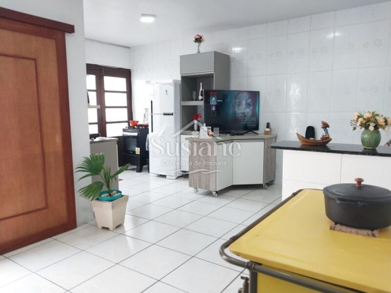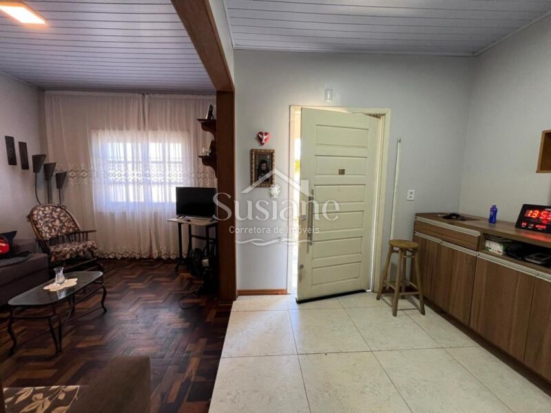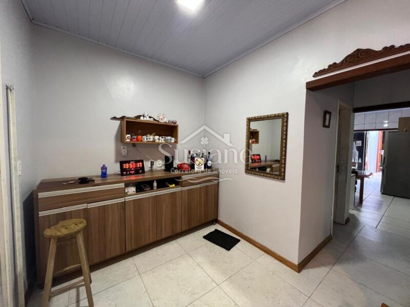 Casa de alvenaria, laje e telha, com dois dormitórios, sala de estar ampla com  lareira, cozinha e banheiro social. Nos fundos conta com uma sala e cozinha ampla com fogão a lenha, dormitório, banheiro social e área de serviço. Pátio lateral e conta com uma garagem fechada com portão eletrônico