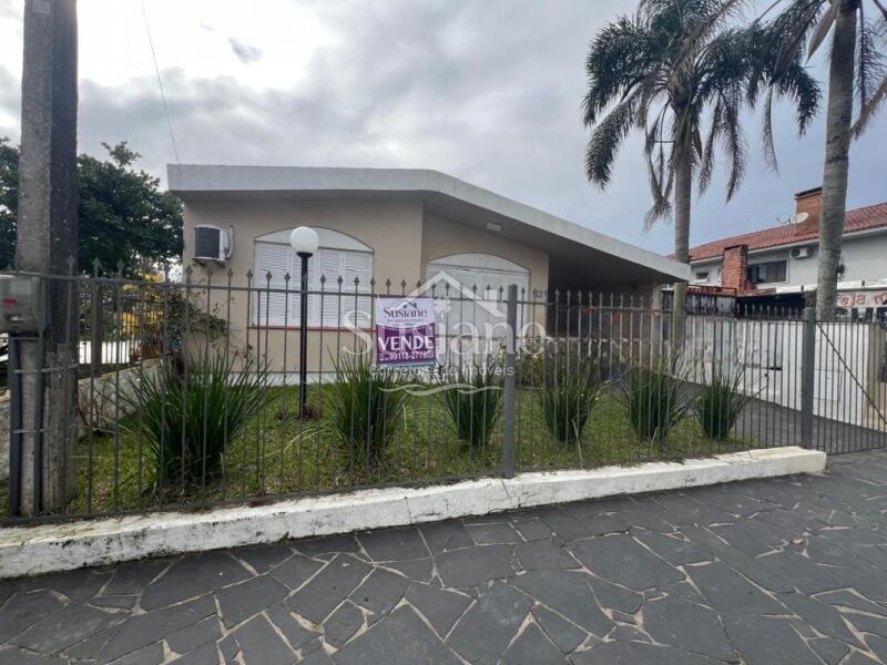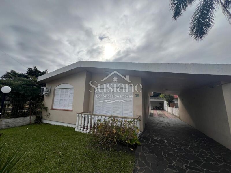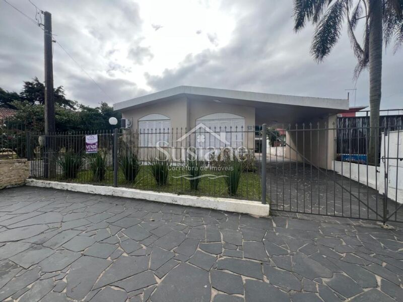 Casa de alvenaria, laje e telha, contendo três dormitórios, sala de estar com lareira, cozinha, banheiro social e abrigo lateral. Nos fundos conta ainda com um apartamento, com um dormitório, sala, banheiro e garagem ampla para dois carros com churrasqueira.