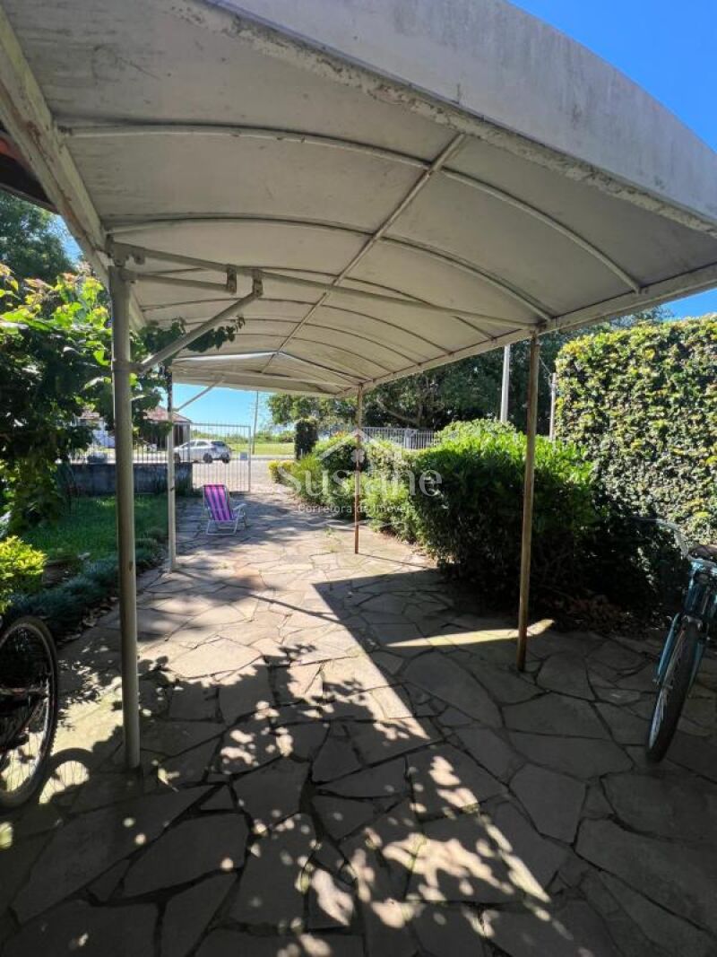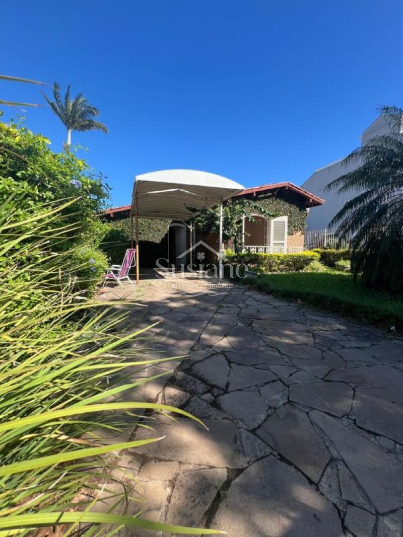 Casa de alvenaria forro e telha, contendo dois dormitórios, sala de estar e jantar com lareira, cozinha, banheiro social e abrigo para carro.