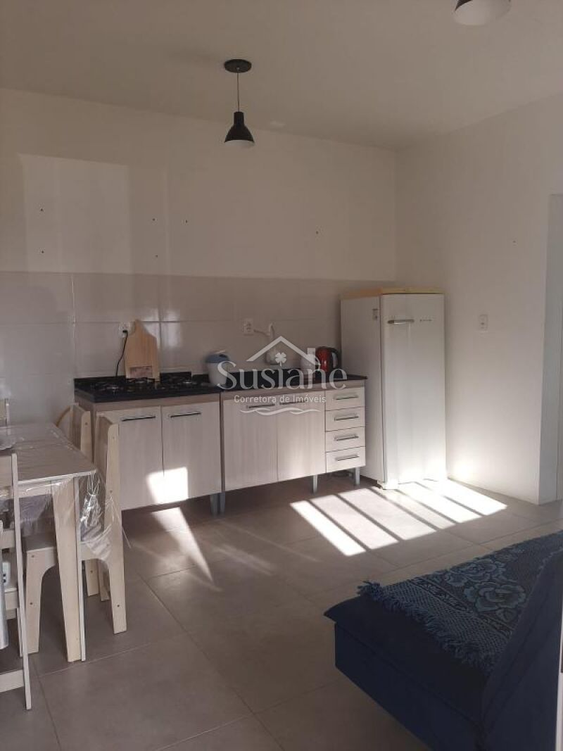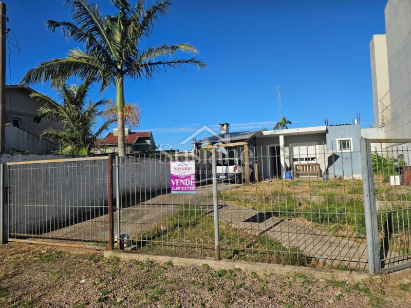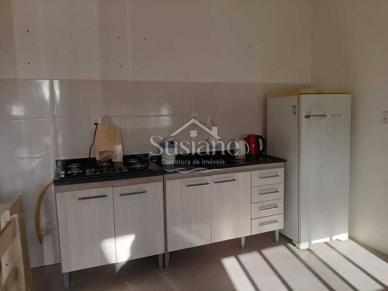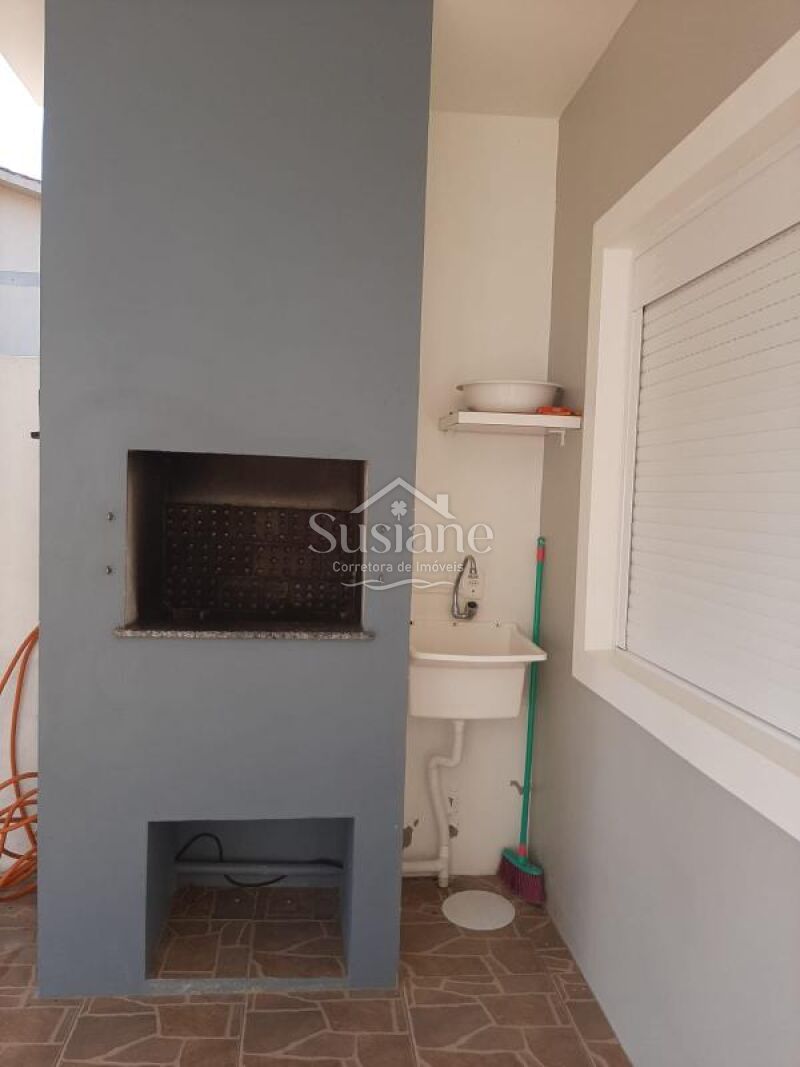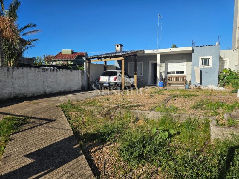 A casa oferece dois dormitórios, sala e cozinha conjugados, banheiro e área com churrasqueira.