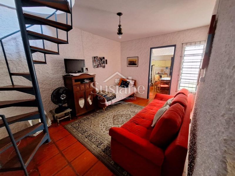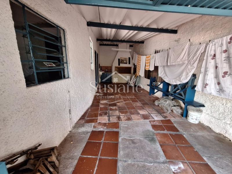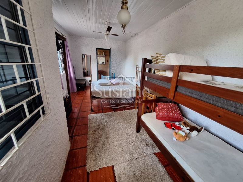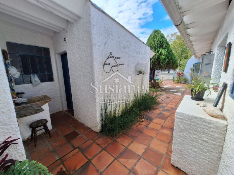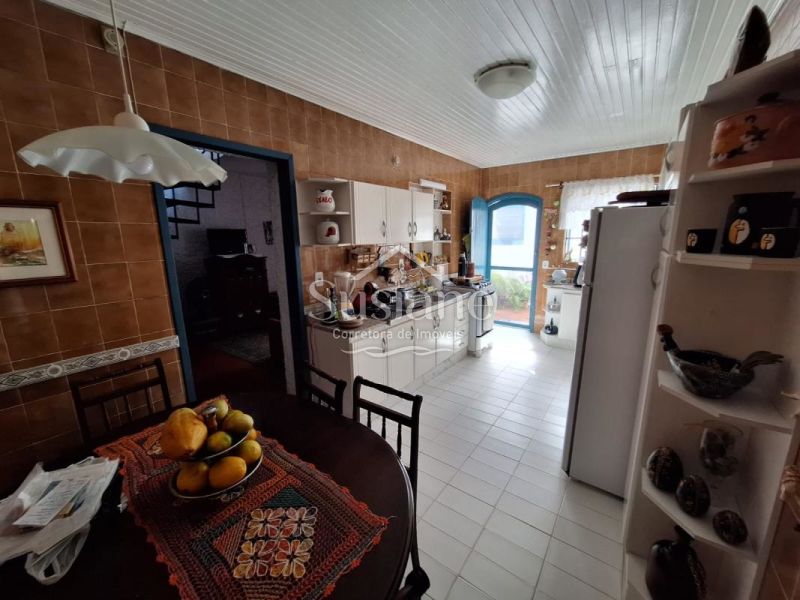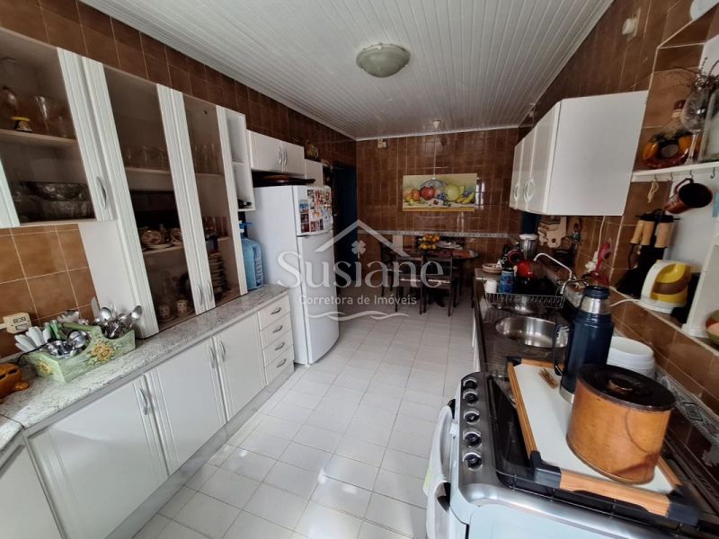 Casa a poucos metros da praia no Balneário, com três dormitórios, duas salas, duas cozinhas, dois banheiros, garagem com churrasqueira, lavanderia.