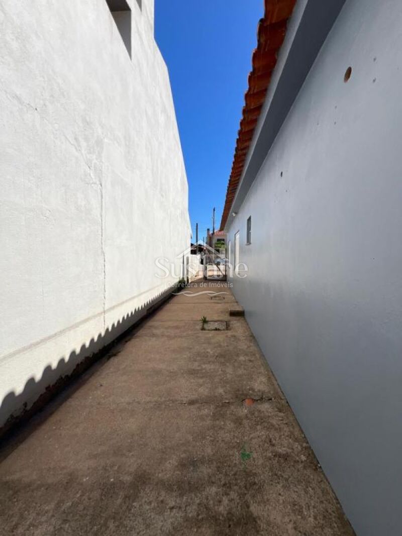 Casa de alvenaria, laje e telha, contendo quatro dormitórios, sala de estar, cozinha ampla, banheiro social, garagem fechada, área coberta com churrasqueira nos fundos. Terreno: 10,00m x 25,00m.