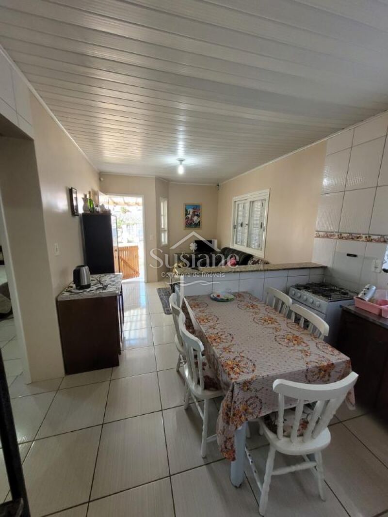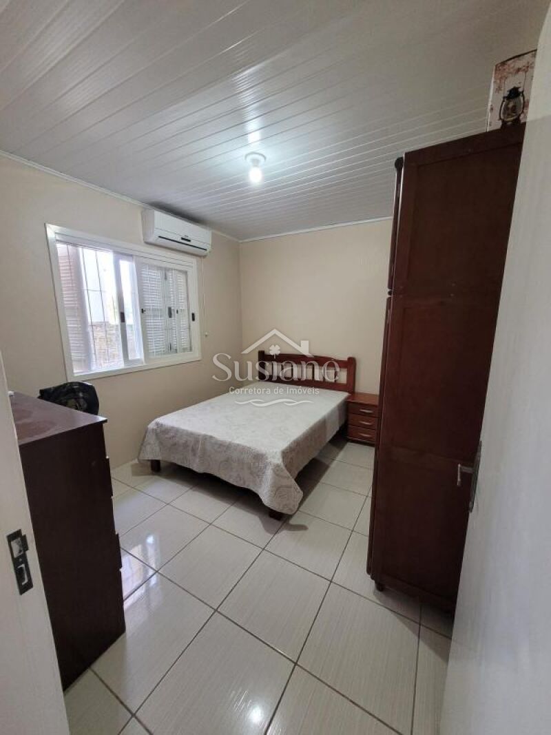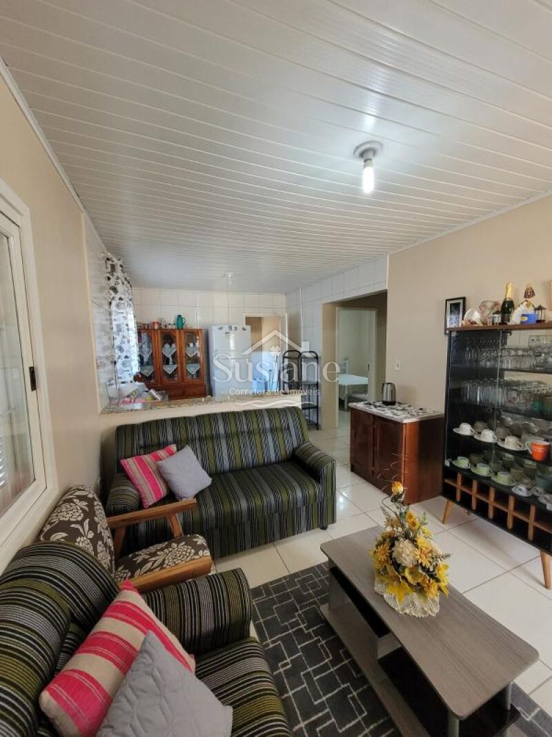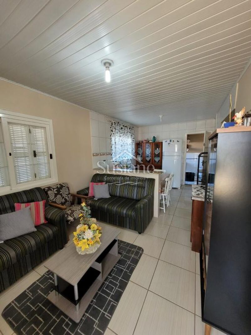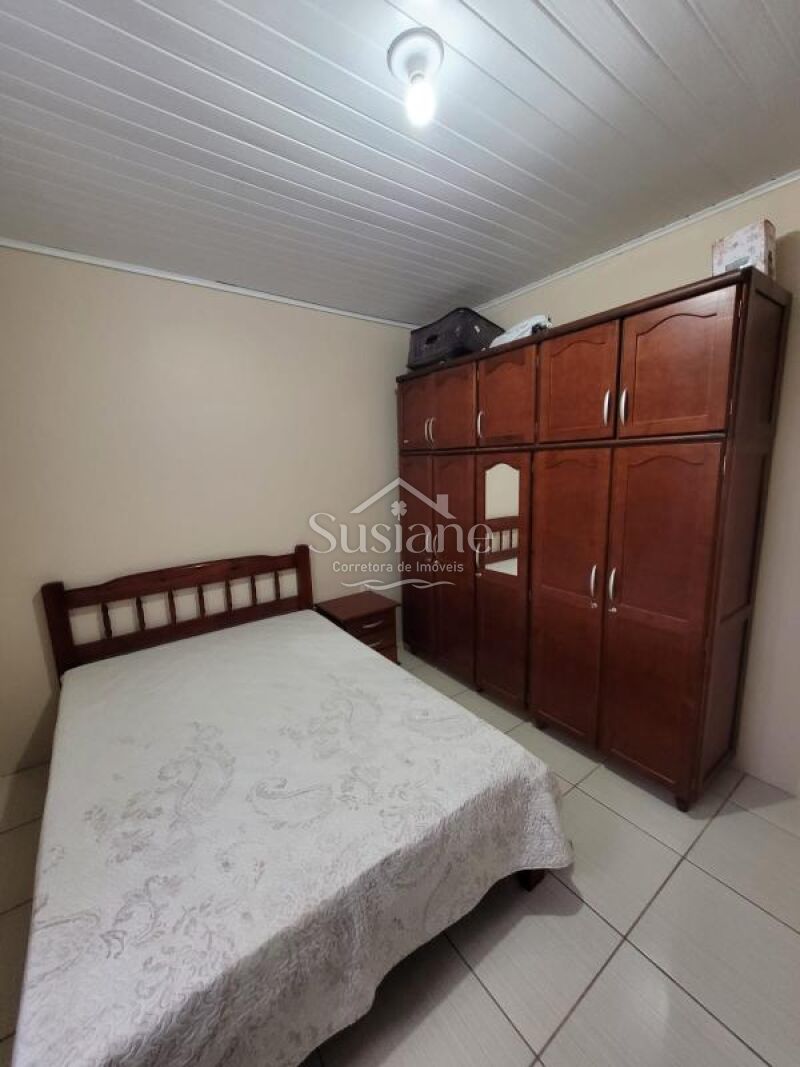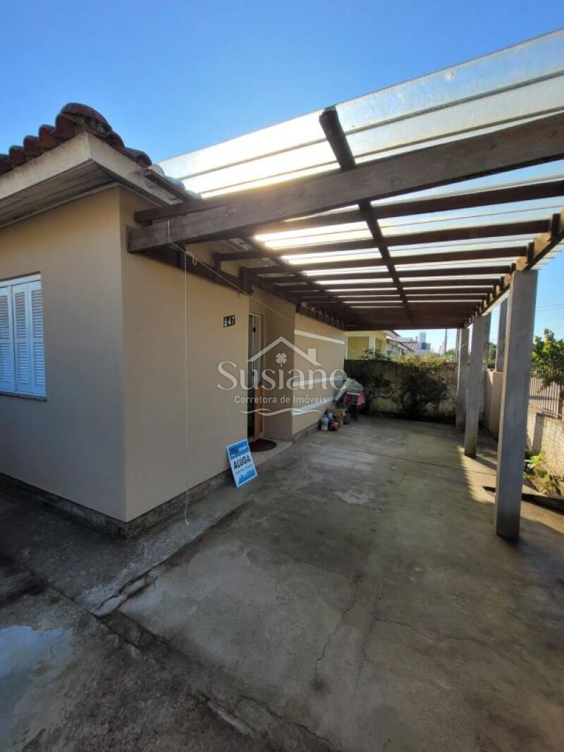 Ela possui dois quartos, banheiro, sala com cozinha conjugadas, lavanderia, área de luz com acesso, pergolado pro carro, pátio calçado, todas janelas com grade, muro da frente com grades.