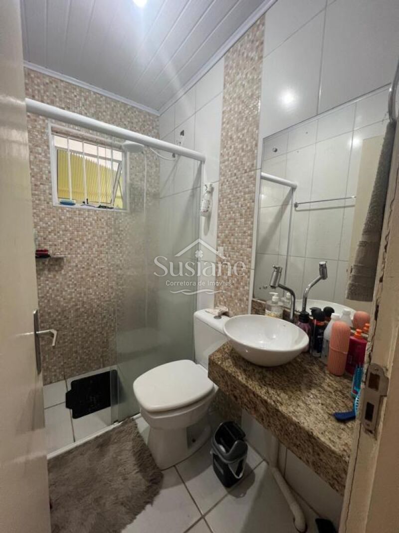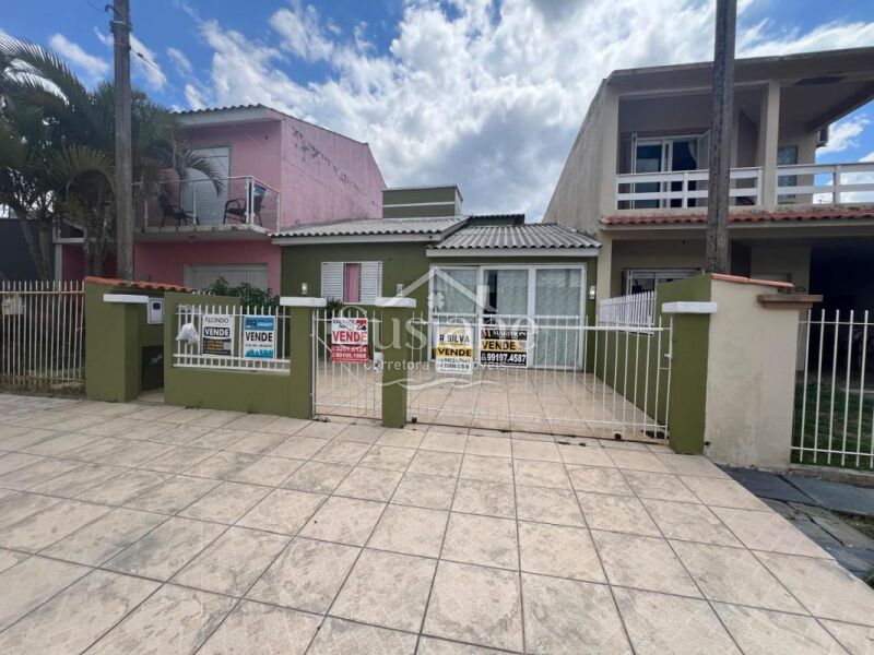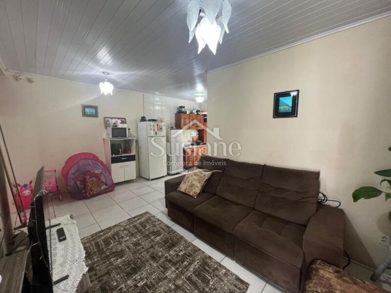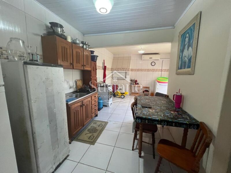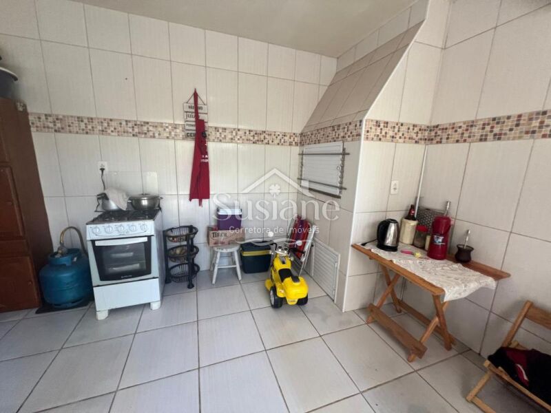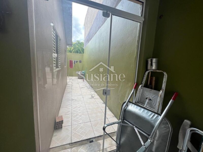 Casa de alvenaria uma parte com laje e outro com forro pvc, com dois dormitórios, sala de estar, cozinha ampla com churrasqueira e área de serviço, banheiro social e garagem fechada.
