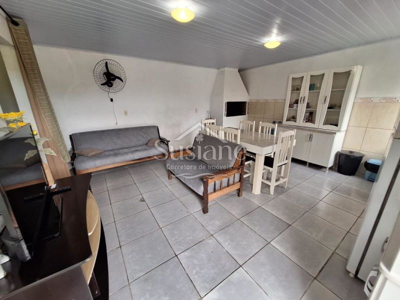 Fundos dois dormitórios, banheiro, sala cozinha com churrasqueira, com 50m²