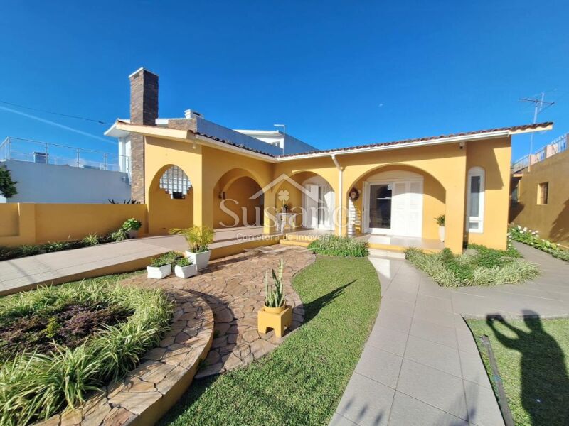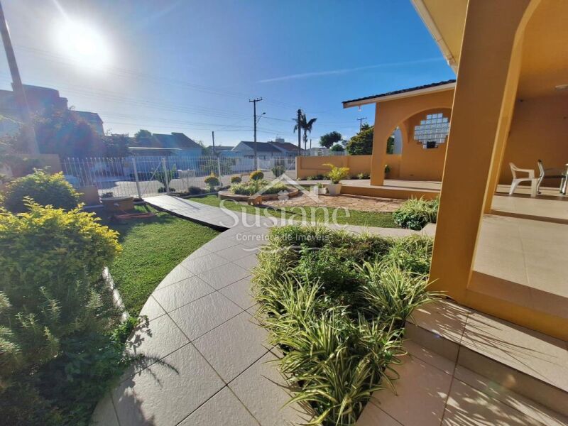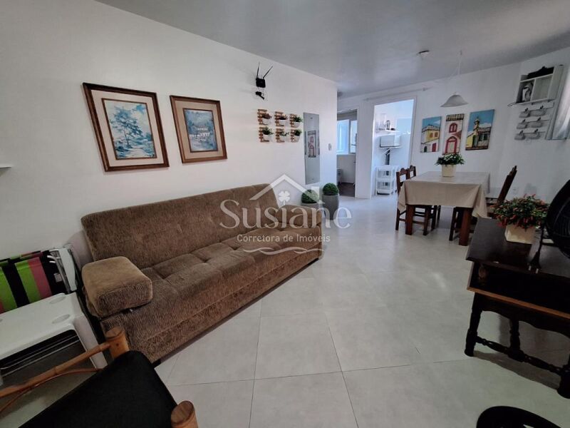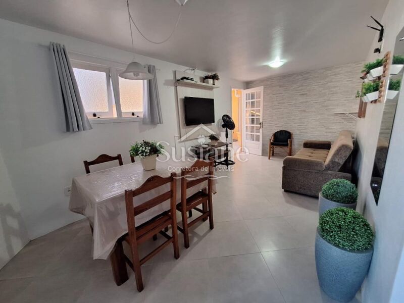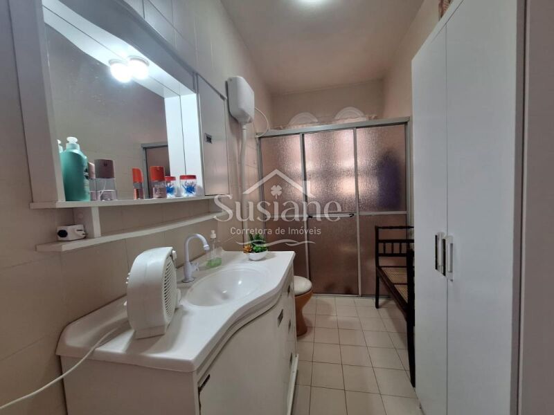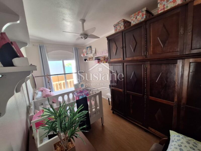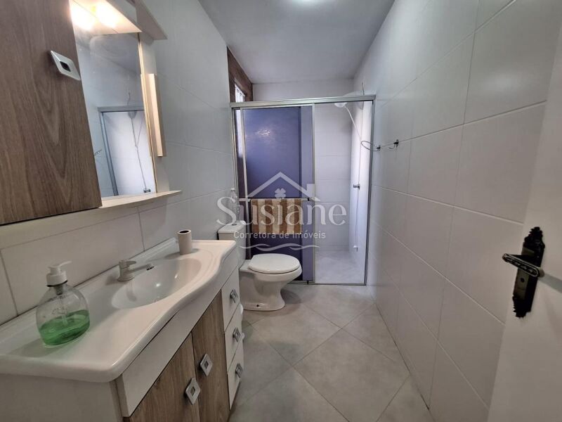 Fundos com dois dormitórios, sala, cozinha, banheiro, lavanderia e pátio coberto, com churrasqueira.