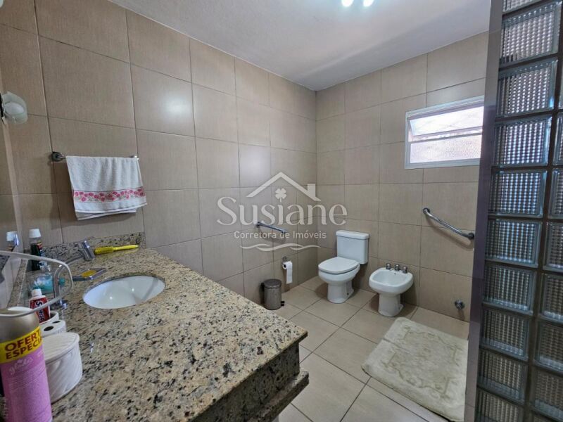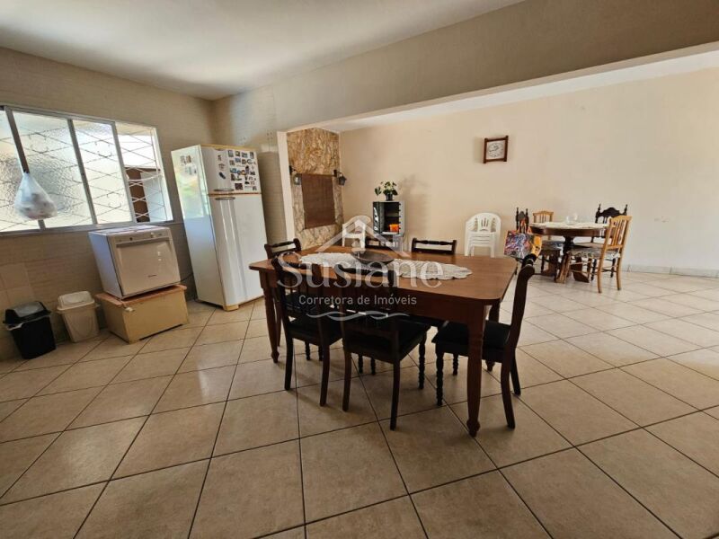 Casa possui 03 dormitórios, 02 banheiros, sala estar, jantar, cozinha, salão de festas com garagem, lavandeira e pátio .