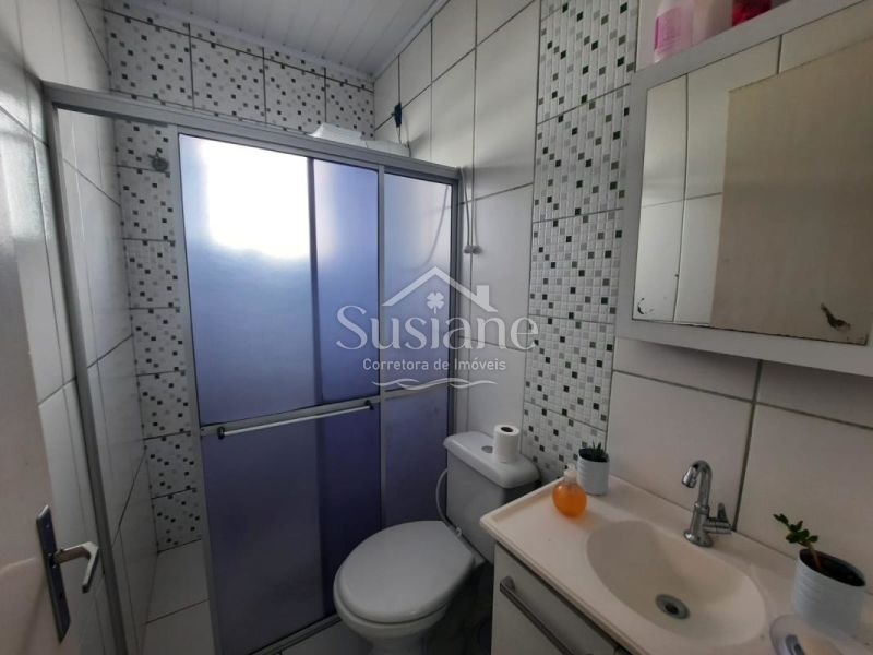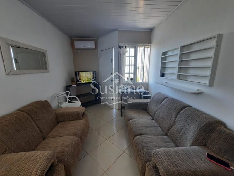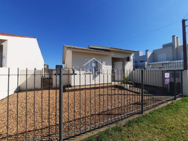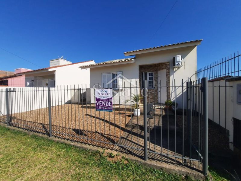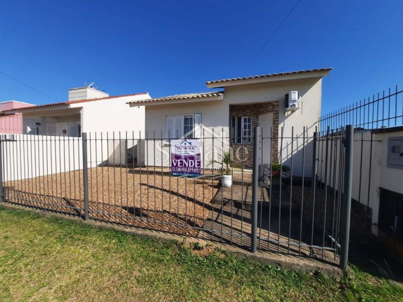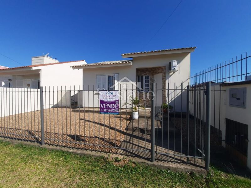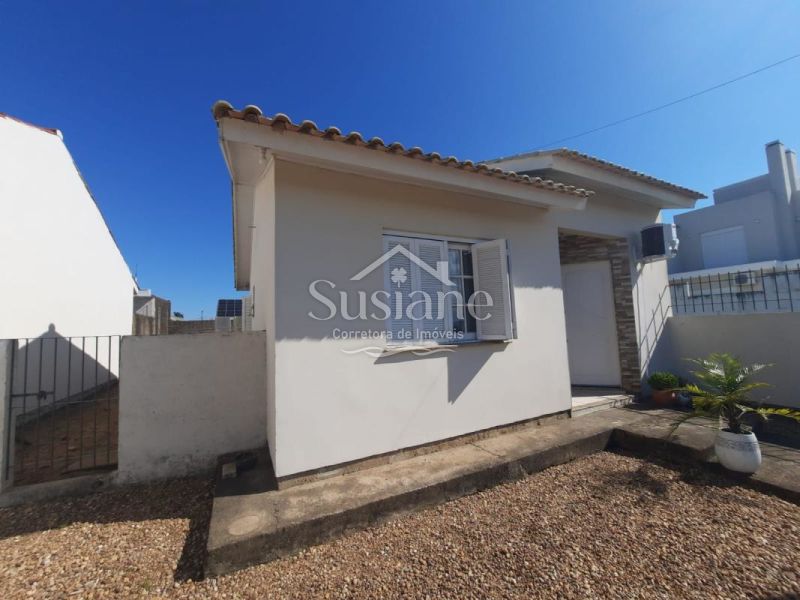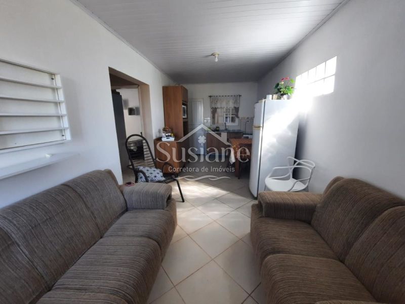Casa contendo dois dormitórios, sala estar, cozinha, banheiro, garagem fechada com churrasqueira.