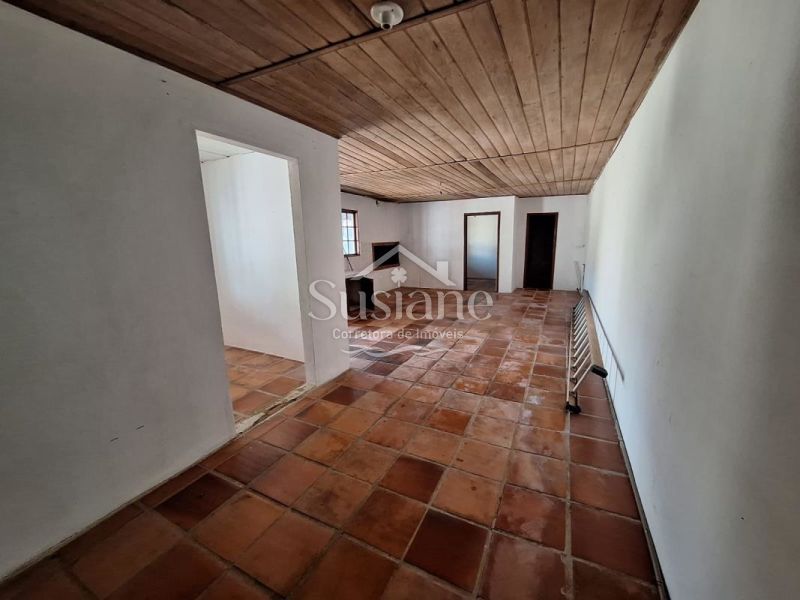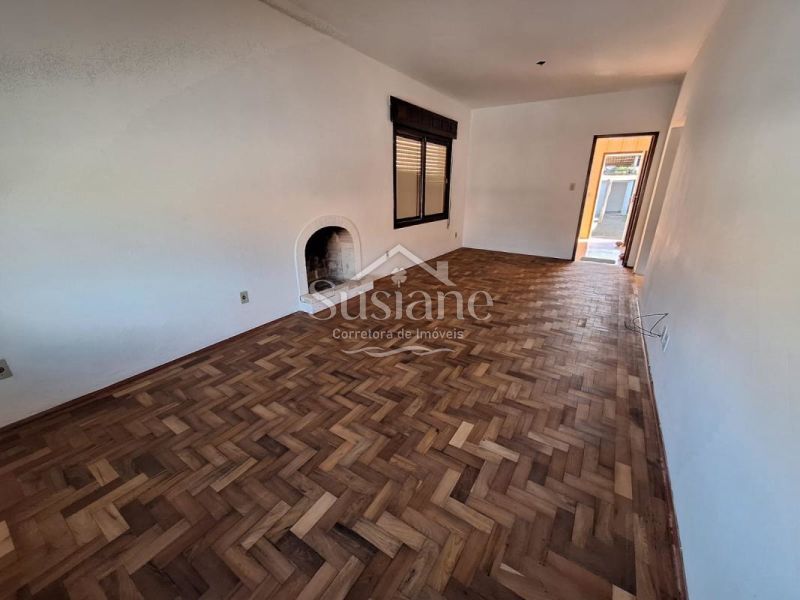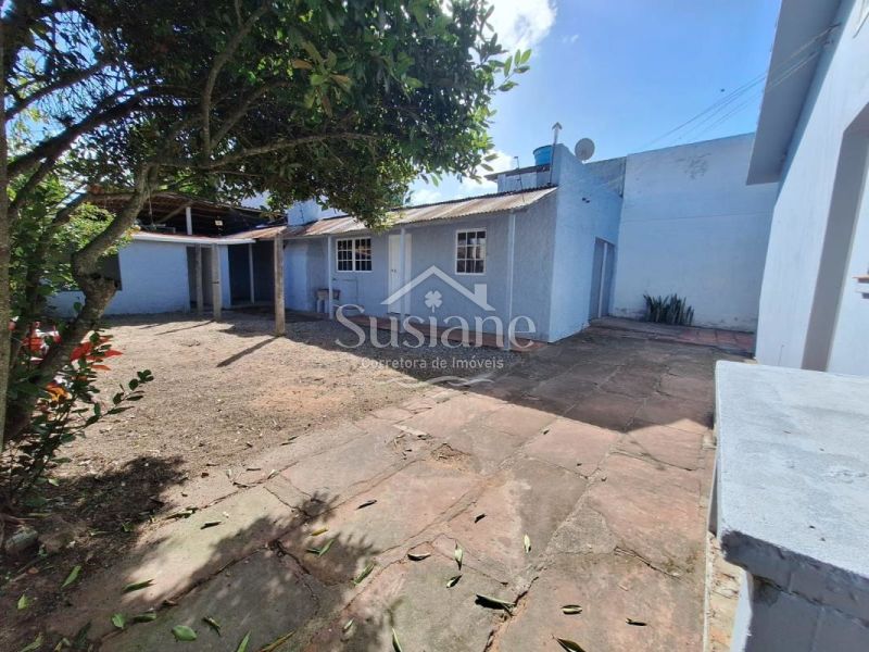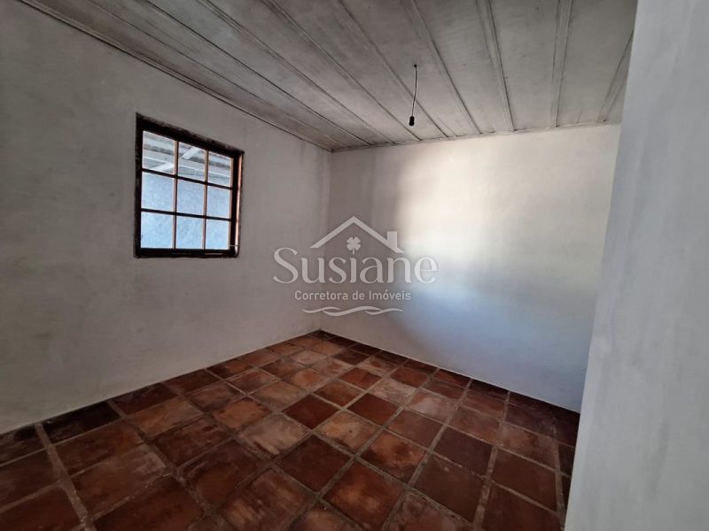 Casa de alvenaria e laje, com dois dormitórios amplos, sala de estar e jantar com lareira, cozinha, banheiro social.