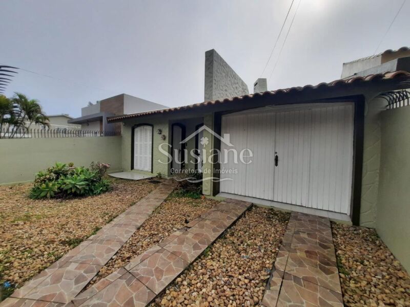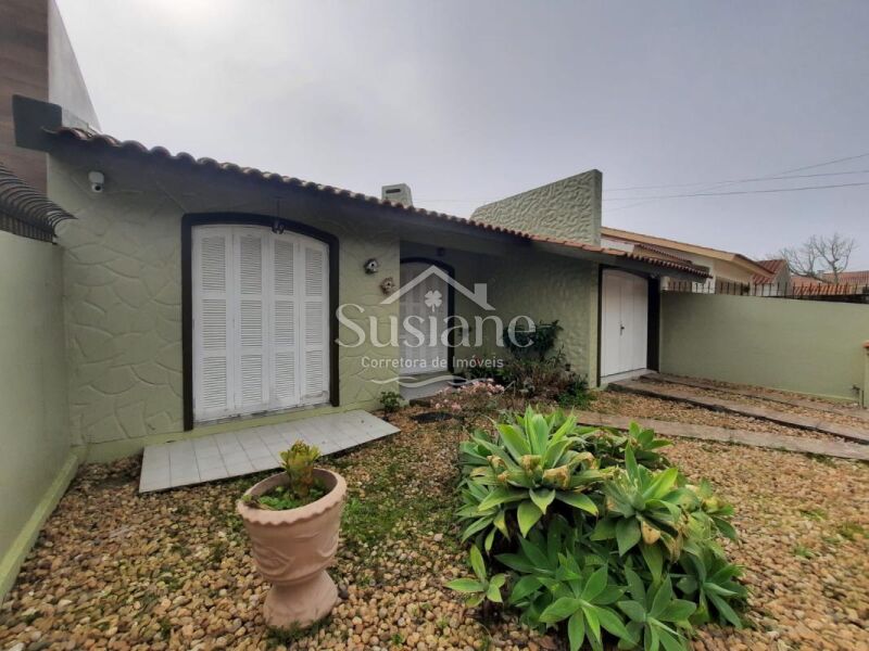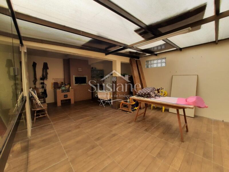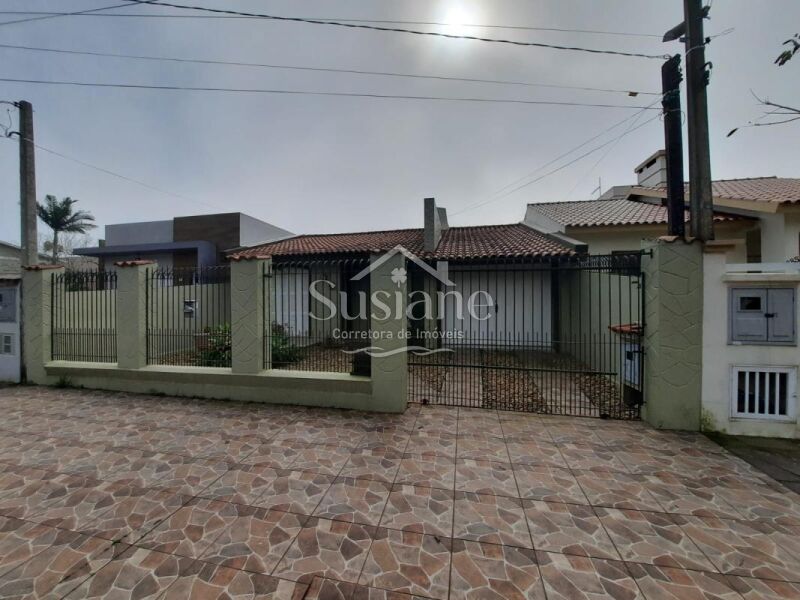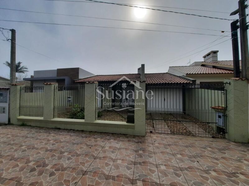 Excelente casa, ótima estrutura, arejada, com laje, contendo três dormitórios sala estar com lareira e com dois ambientes, sala de jantar, cozinha, banheiro social, despensa. Nos fundos: Terraço, salão de festas com churrasqueira, área toda coberta , um dormitório e um banheiro.