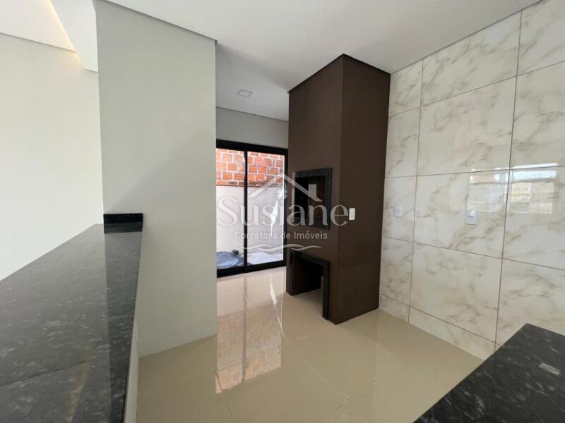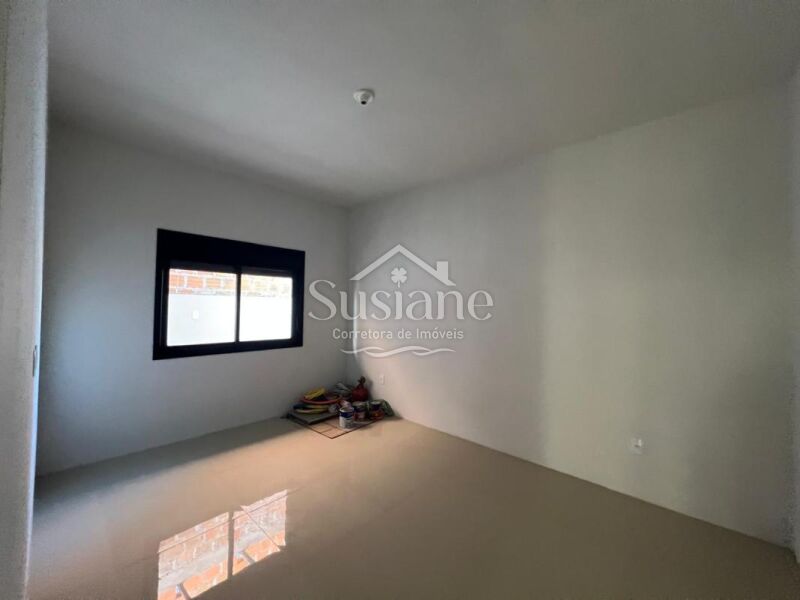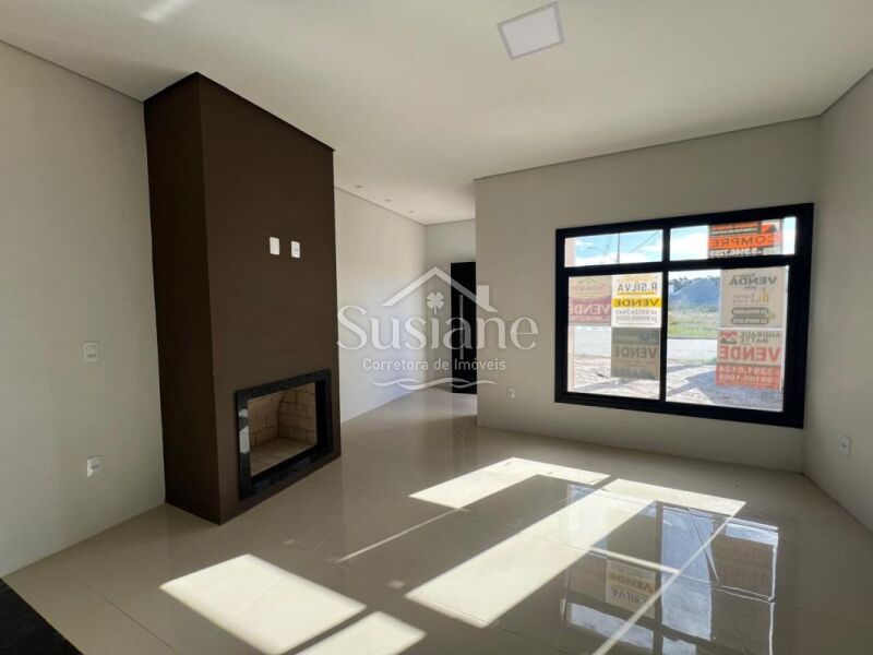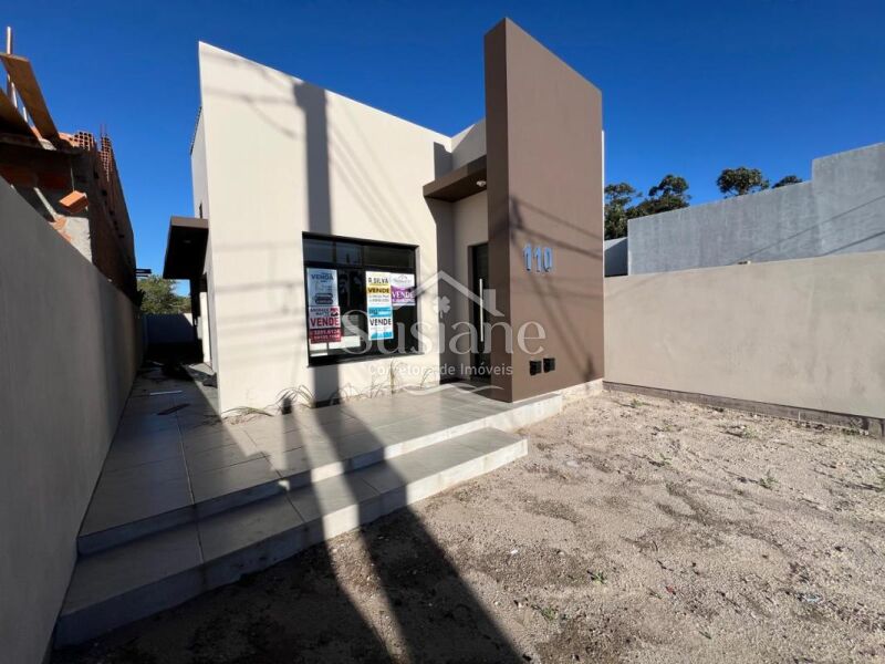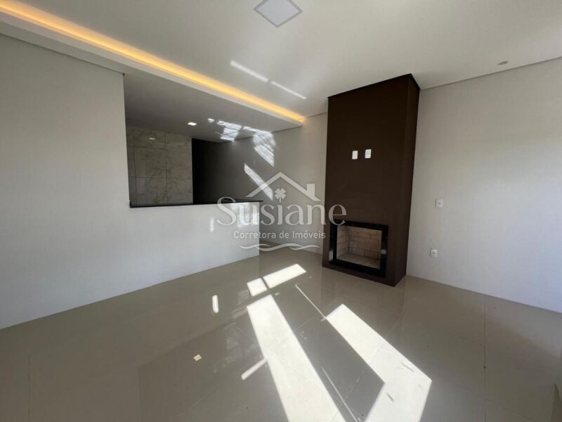 Casa de alvenaria, laje e acabamento em gesso, com dois dormitórios, sala de estar com lareira em um conceito aberto com a cozinha com churrasqueira, banheiro social e lavanderia. Pátio nos fundos, imóvel bem iluminado e ótima ventilação.
