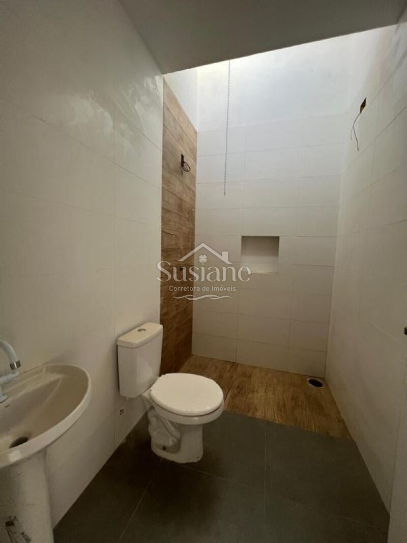 Casa de alvenaria e laje, contendo dois dormitórios, sala de estar e cozinha com churrasqueira conjugada, área de serviço, banheiro social e abrigo para carro . Terreno medindo 7,50m x 10,00m.