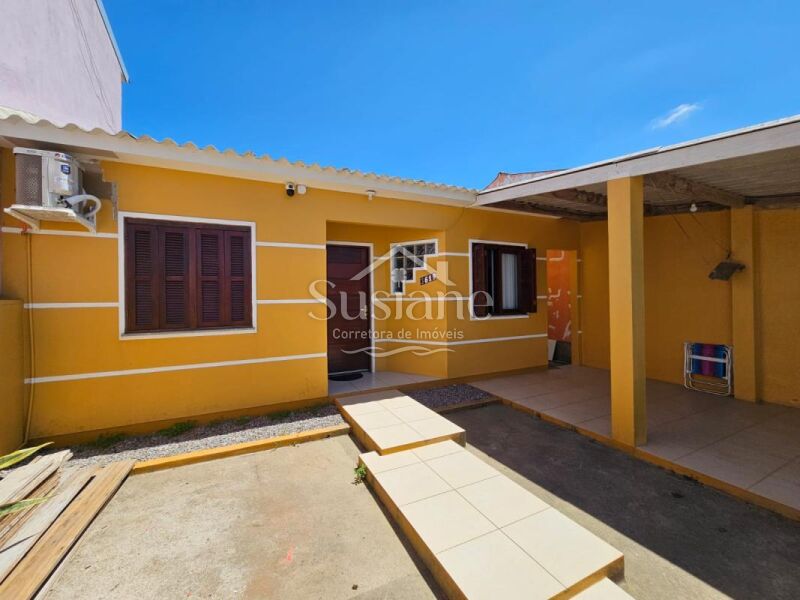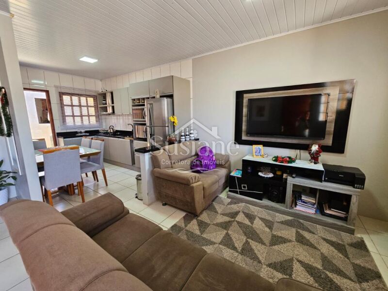 A casa oferece dois dormitórios, sala estar, cozinha, banheiro e garagem. Nos fundos possui uma obra inacabada .