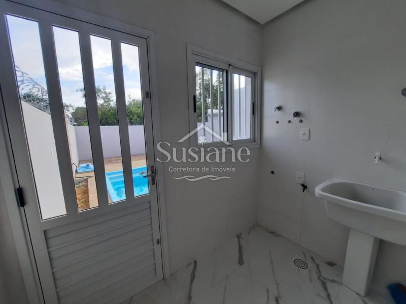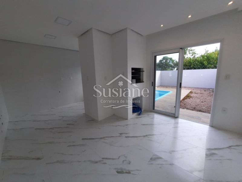 Casa com três quartos, sendo um suite, Iluminação completa, Gesso em toda a casa, Abertura em alumínio, com persiana elétrica e com tela, Churrasqueira, Espera para lareira ou calefator, Espera para água quente ou solar ou a gás ( cozinha, churrasqueira, e banheiro) Casa com dois banheiros e um lavabo, Piso aquecido nos banheiros, Piso vinílico nos quartos, Massa corrida em toda a casa, Piscina com iluminação e com espera para aquecimento solar, Espera para energia fotovoltaica, Espera para ar condicionado, sala, cozinha, churrasqueira e os três quartos, Vaga para dois carros , com portão eletrônico. Terreno 6 x 27.