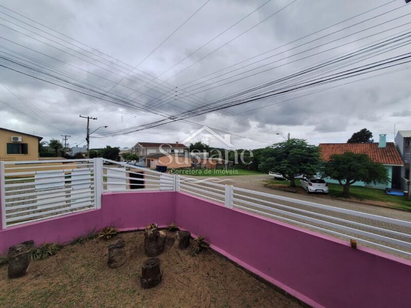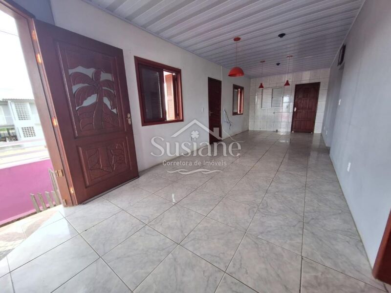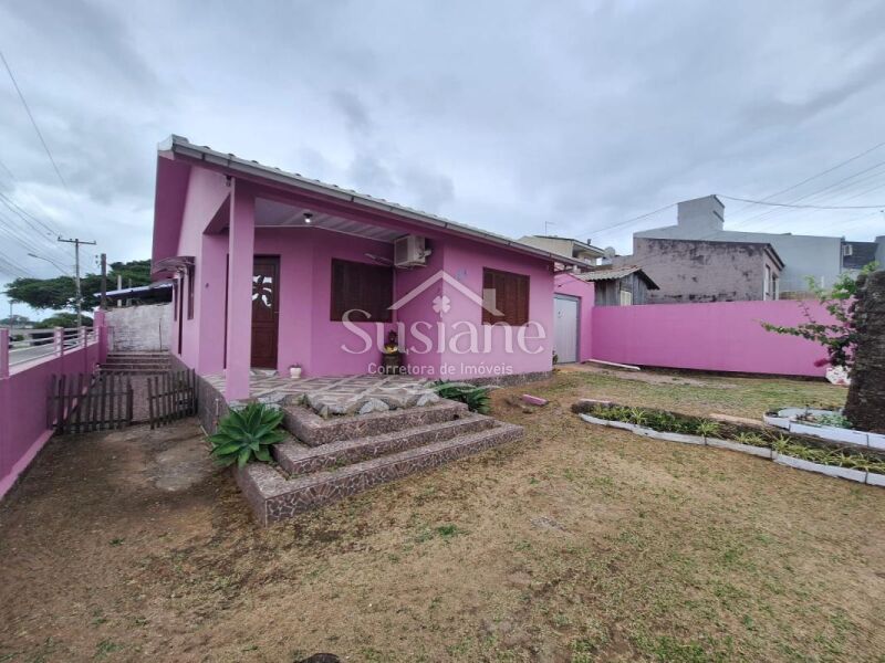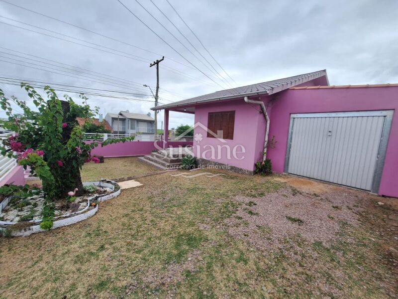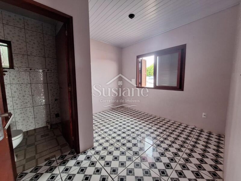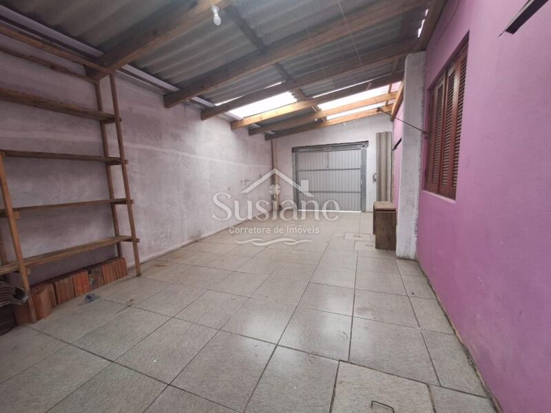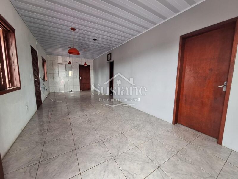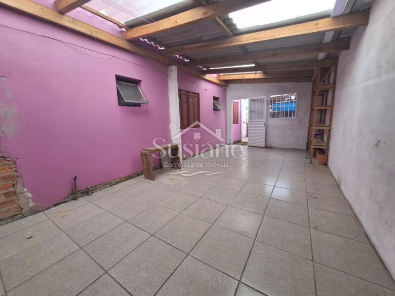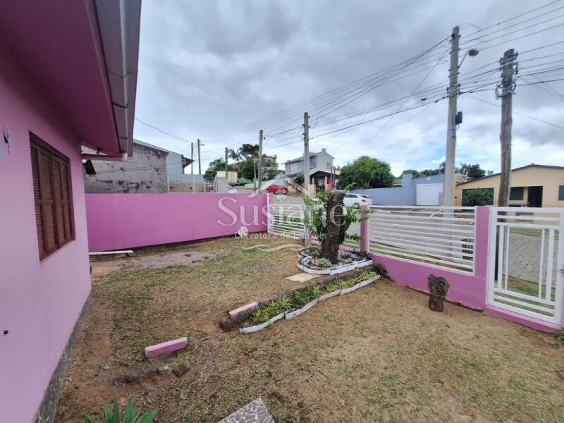 Casa ampla de esquina, em alvenaria, contendo sala de estar e cozinha conjugadas, três dormitórios (Um deles sendo suíte), banheiro e garagem.