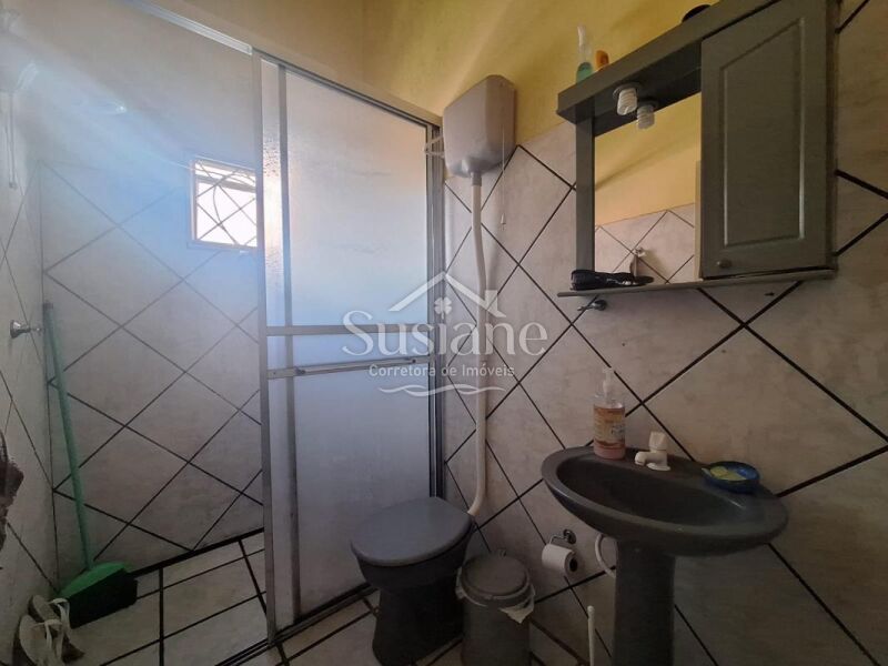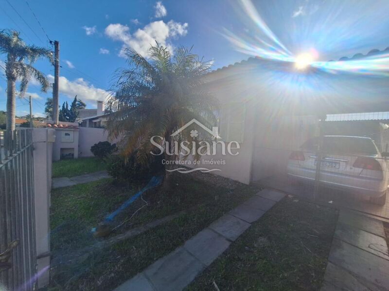 Casa em alvenaria, com dois dormitórios, sala cozinha, banheiro e garagem. Fundos área coberta com lavanderia;