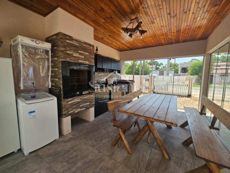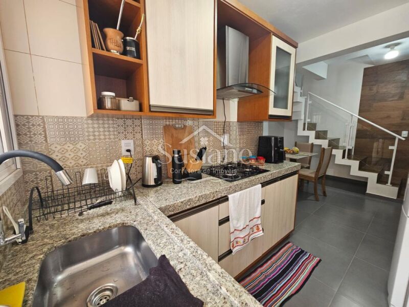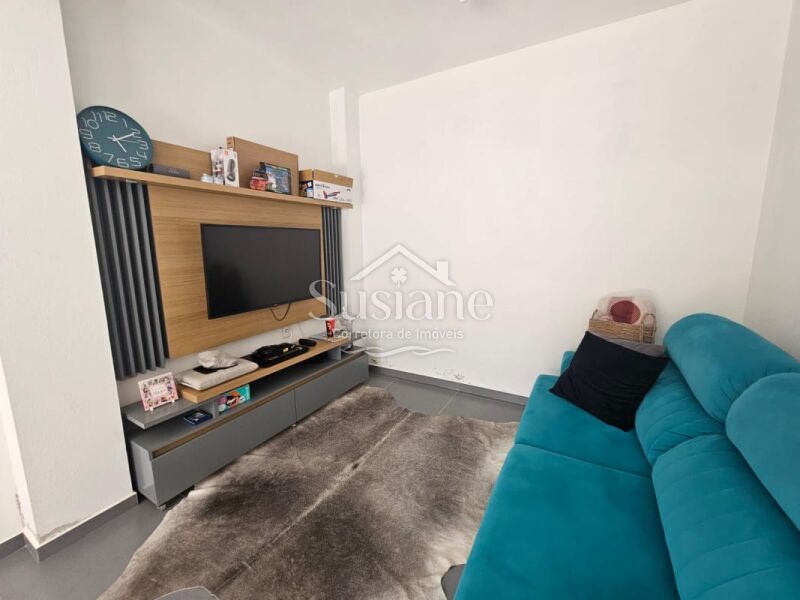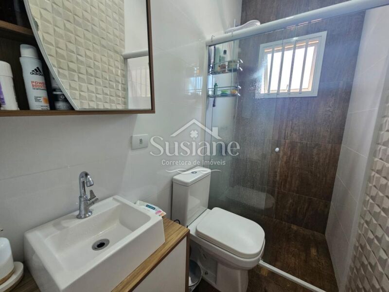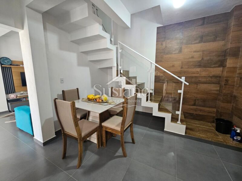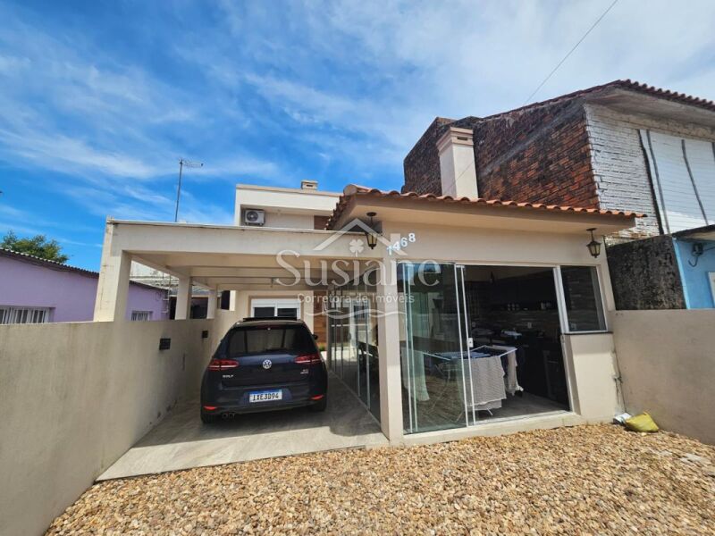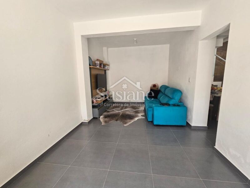 Ele oferece: dois dormitórios, dois banheiros, sala estar, jantar, cozinha, quiosque com churrasqueira e garagem para carro.