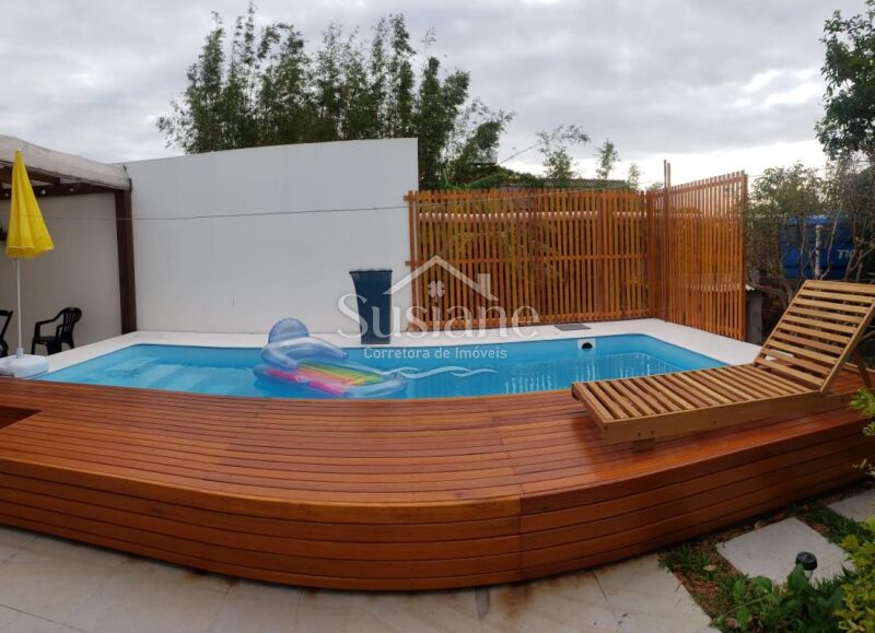 Lindo Sobrado de alto padrão possuindo dois quartos, um deles suíte com possibilidade de mais uma peça, sala ampla com pé direito duplo, cozinha espaçosa com móveis planejados. Piso térreo porcelanato e na suíte piso laminado. Jardim na frente da casa e nos fundos piscina e espaço gourmet além de um pomar com dezenas de árvores frutíferas.