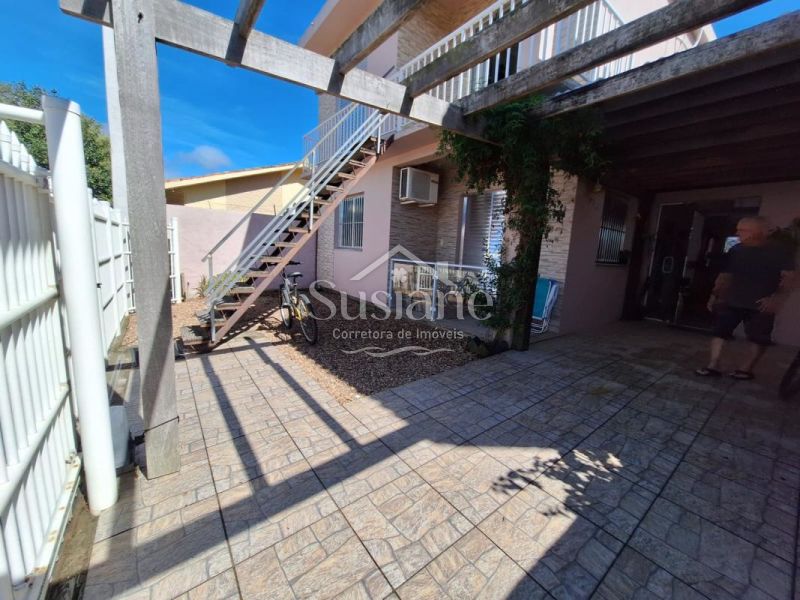 Piso inferior, com dois dormitórios, sala cozinha com churrasqueira, banheiro, lavanderia, área gourmet com churrasqueira, pátio, abrigo para carro.
