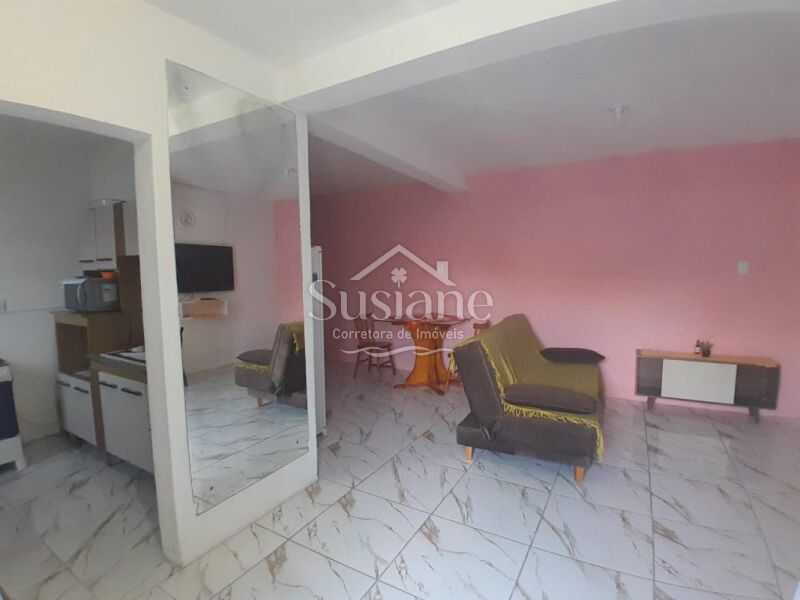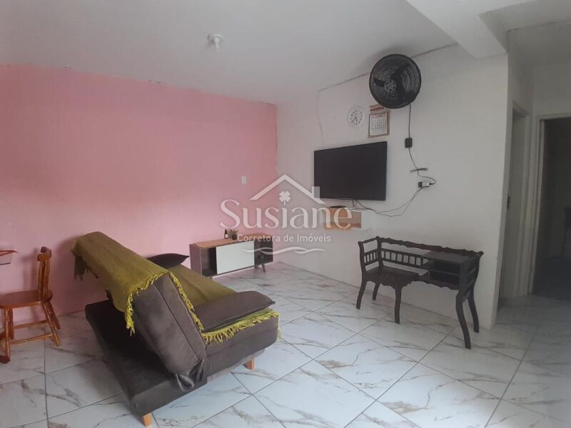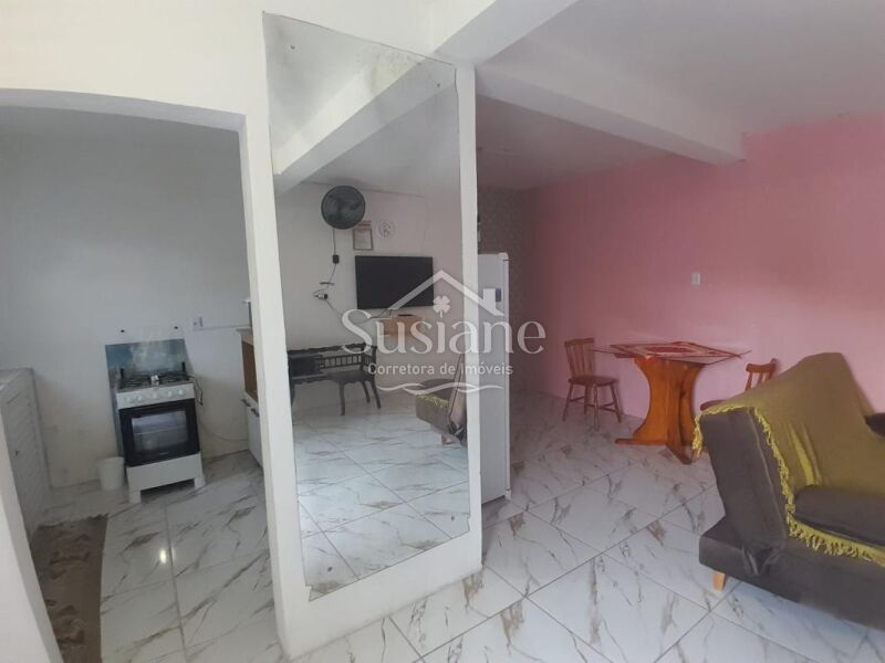 Casa em alvenaria e laje em Condomínio no Bairro Navegantes, o imóvel conta com dois dormitórios, sala e cozinha conjugadas, banheiro e garagem fechada com churrasqueira e lavanderia.