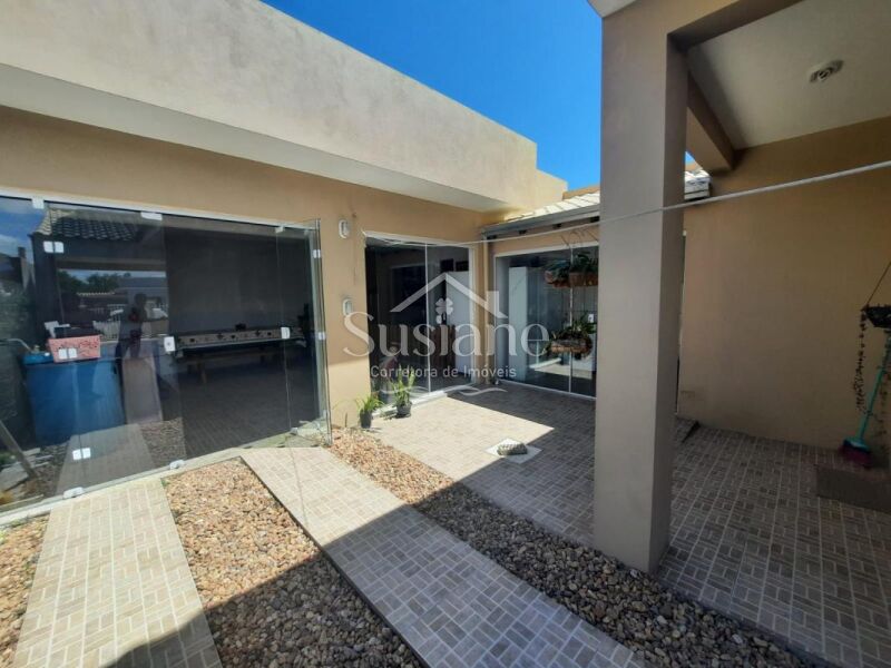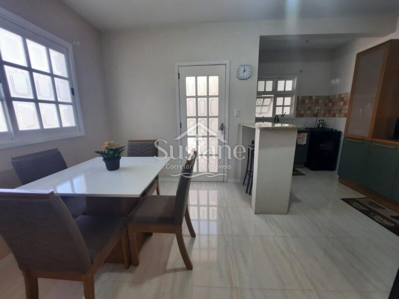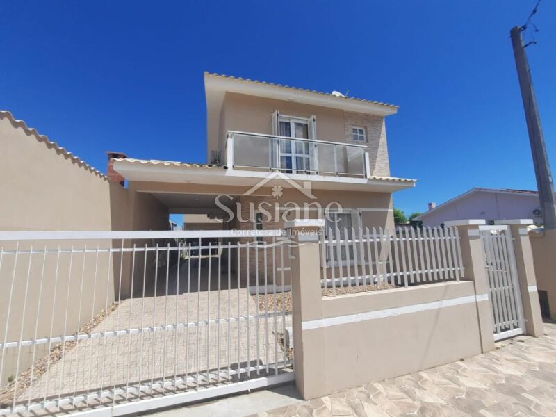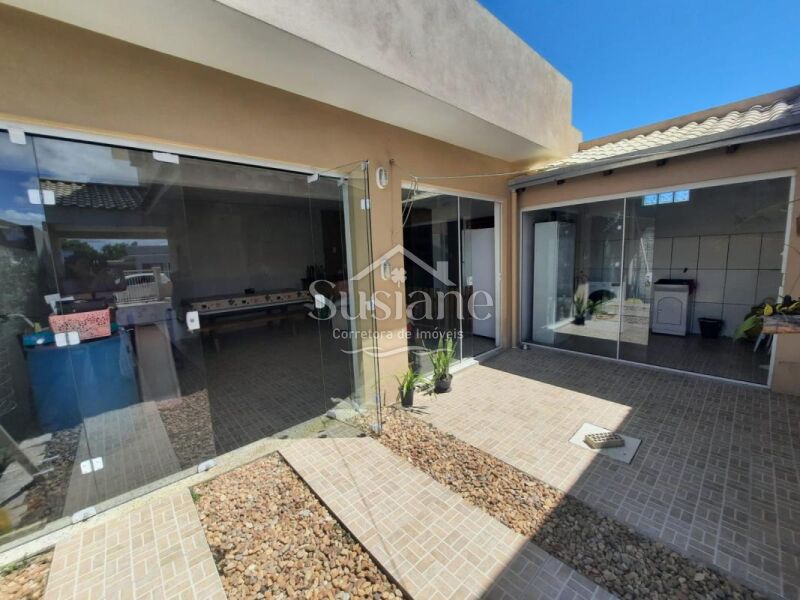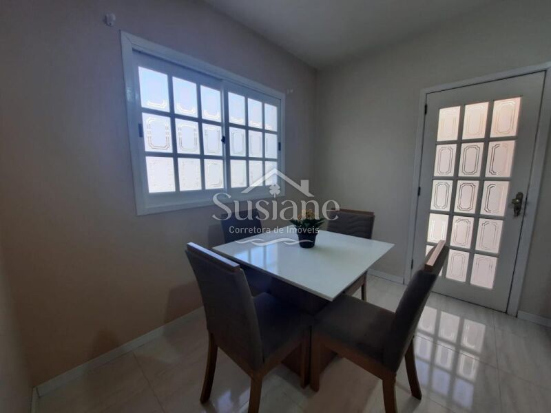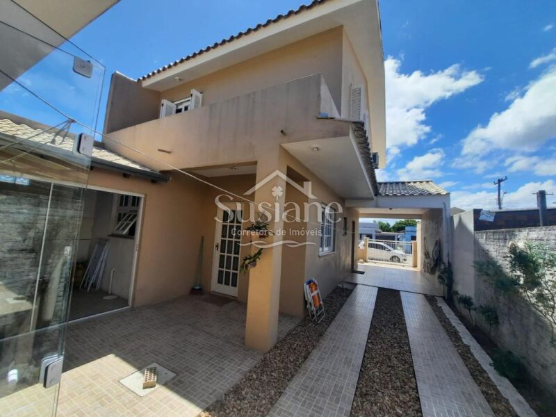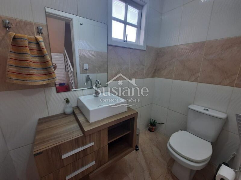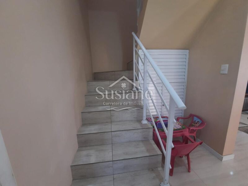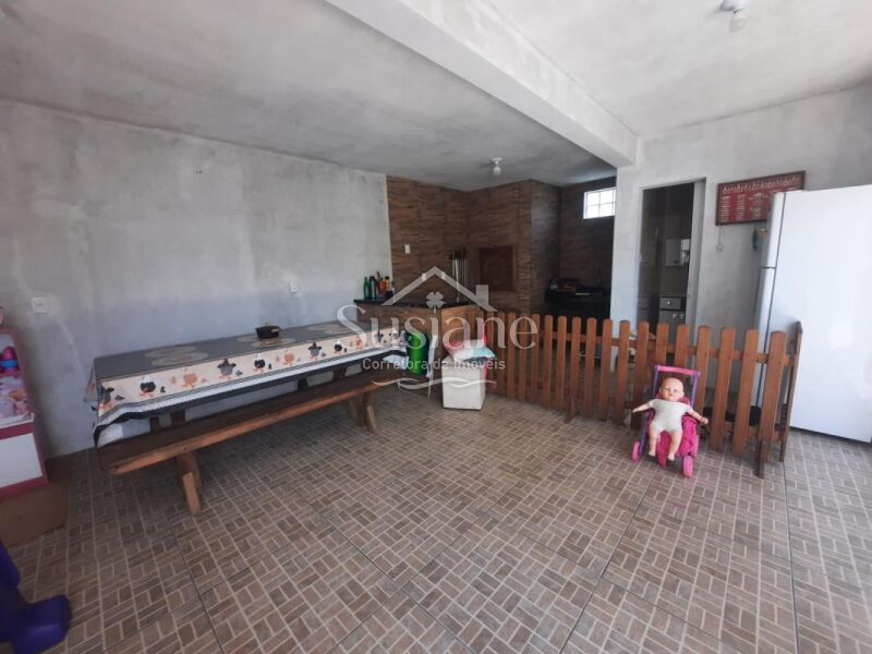 Ele oferece uma suíte, dois dormitórios, 2 banheiros sociais, sala estar com lareira, cozinha, salão de festas com churrasqueira e mais banheiro no fundo, um sobrado super aconchegante para você morar!!!